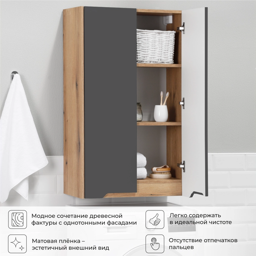 Шкаф пенал для ванной подвесной Итана Nill 60 Графит