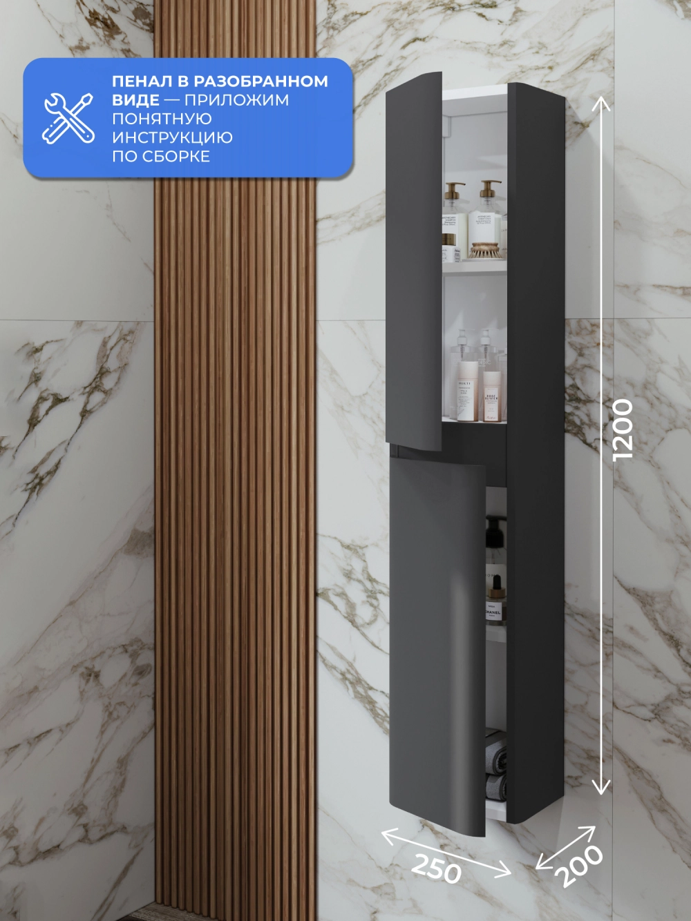 Шкаф пенал ИТАНА Роберто 25, подвесной, Графит
