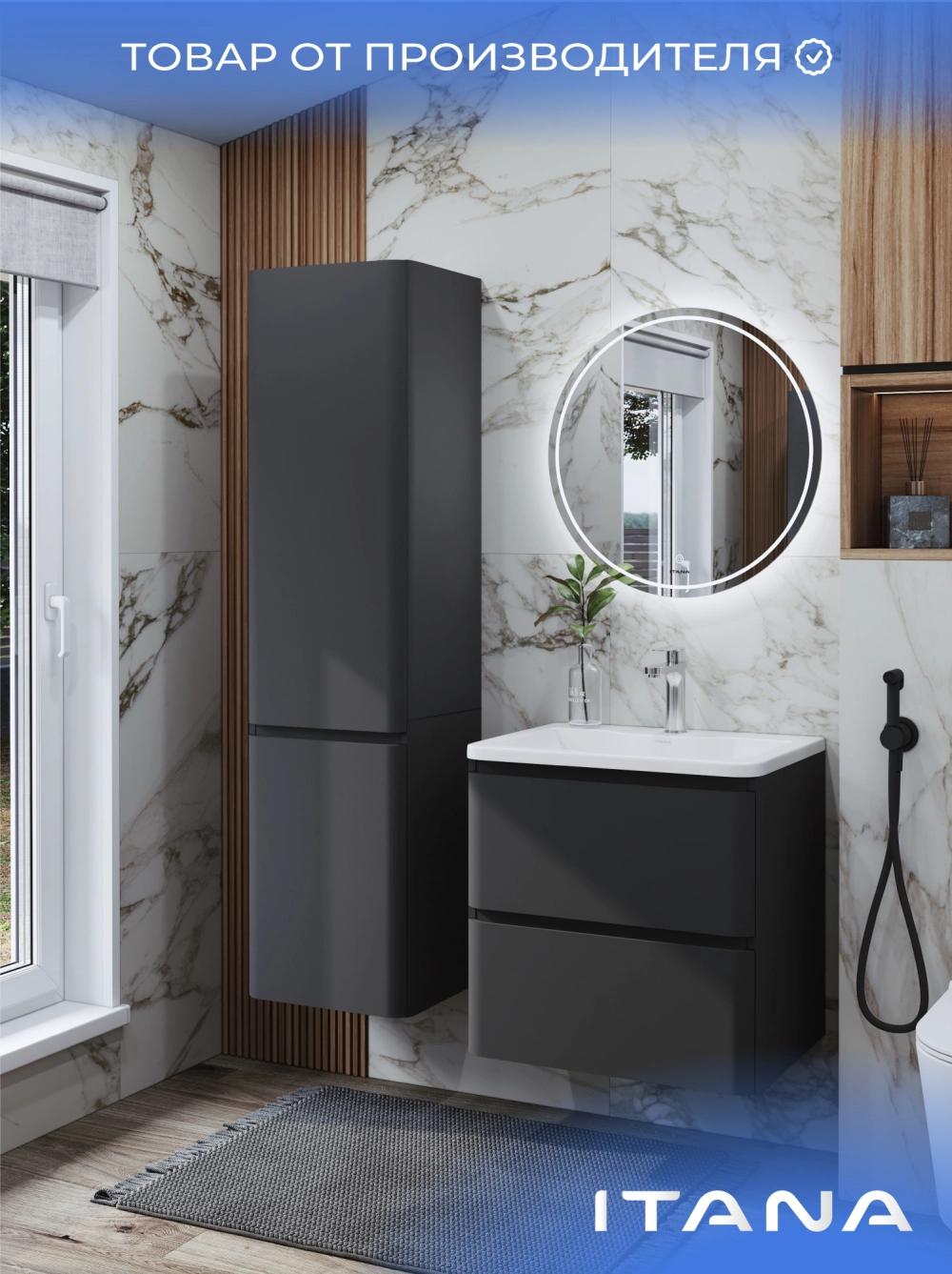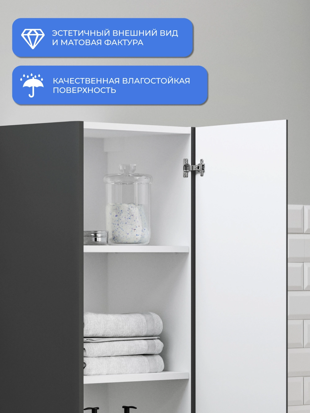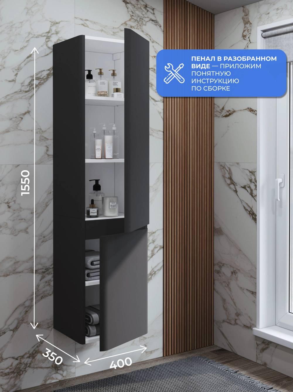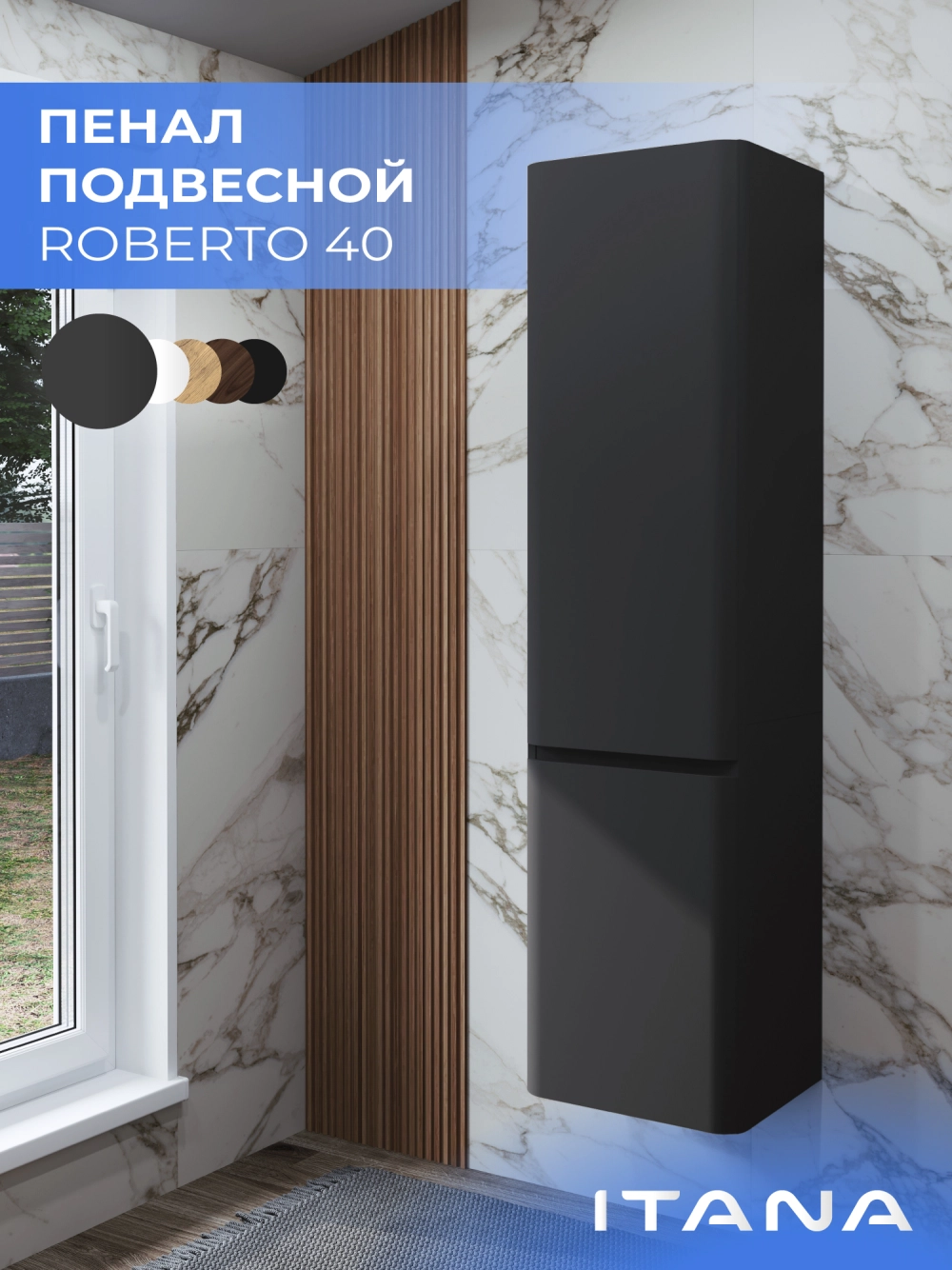 Шкаф пенал ИТАНА Роберто 40, подвесной, Графит