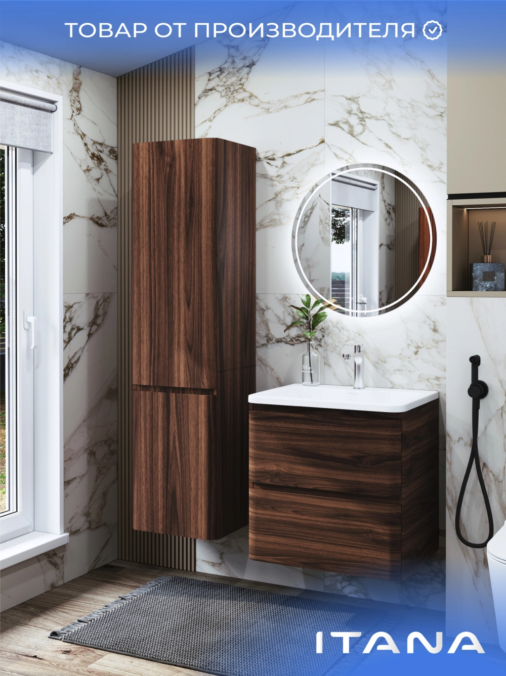 Шкаф пенал ИТАНА Роберто 40, подвесной, Орех Пекан шоколад
