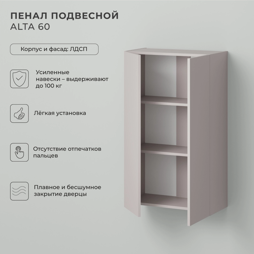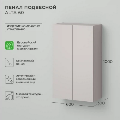 Пенал в ванную из коллекции Alta 60 - это сочетание природного декора. Шкаф-пенал поможет создать комфортные условия в ванной комнате. Благодаря его компактным размерам 600х300х1000 и настенному крепежу он занимает немного места и надежно закрепляется. Пенал можно удобно разместить над стиральной машиной. Шкаф для ванной изготовлен из ламинированного ДСП, поэтому выдерживает высокие эксплуатационные нагрузки. Качественная фурнитура с доводчиками обеспечивает легкое открывание и плавное закрывание дверок. Внутри пенала полки, где можно рационально распределить и разместить все необходимые вещи для ванной комнаты. Для точного выбора пенала в ванную комнату рекомендуем обратиться к схеме замеров, которая находится на фото в карточке товара. Размеры изделия могут отличаться +/-1 см в связи со спецификой производства. Дополнить комплект можно тумбой с раковиной и зеркалом из коллекции Alta. Изделия коллекции качественные, функциональные и органически впишутся в популярные и современные интерьерные решения для ванных комнат. Шкаф пенал для ванной комнаты доставляется в предварительно собранном виде, надежно упакован.