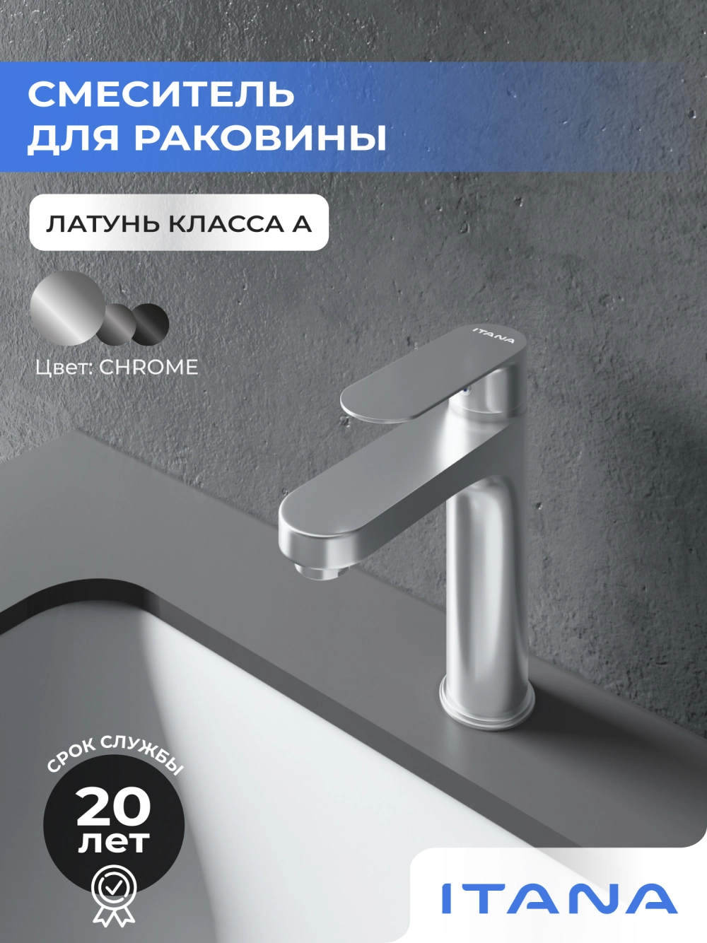 Смеситель для раковины в ванную Itana Rain керамический картридж, хром