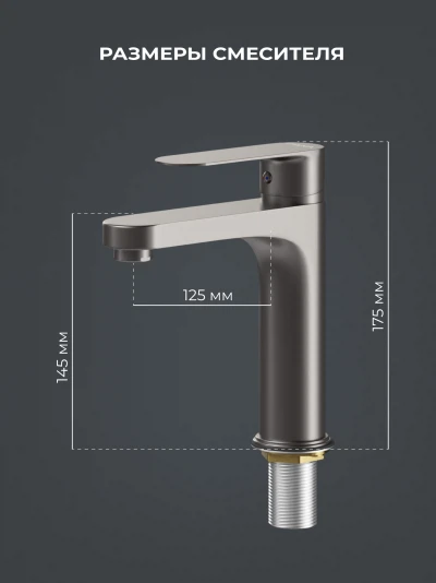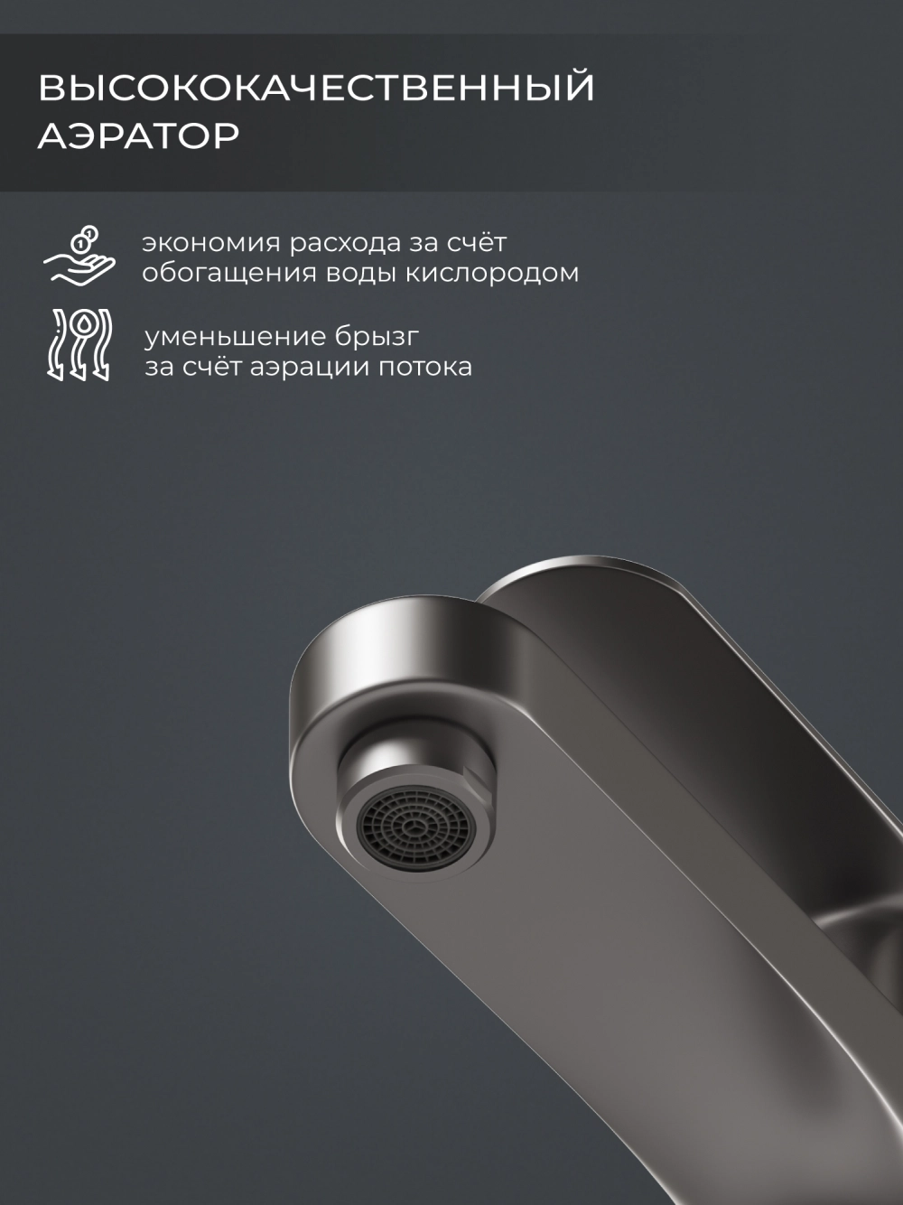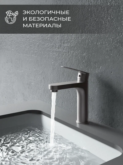 Смеситель для раковины в ванную Itana Rain керамический картридж, оружейная сталь