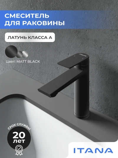 Смеситель для раковины в ванную Itana Water керамический картридж, черный