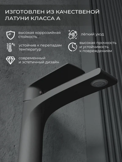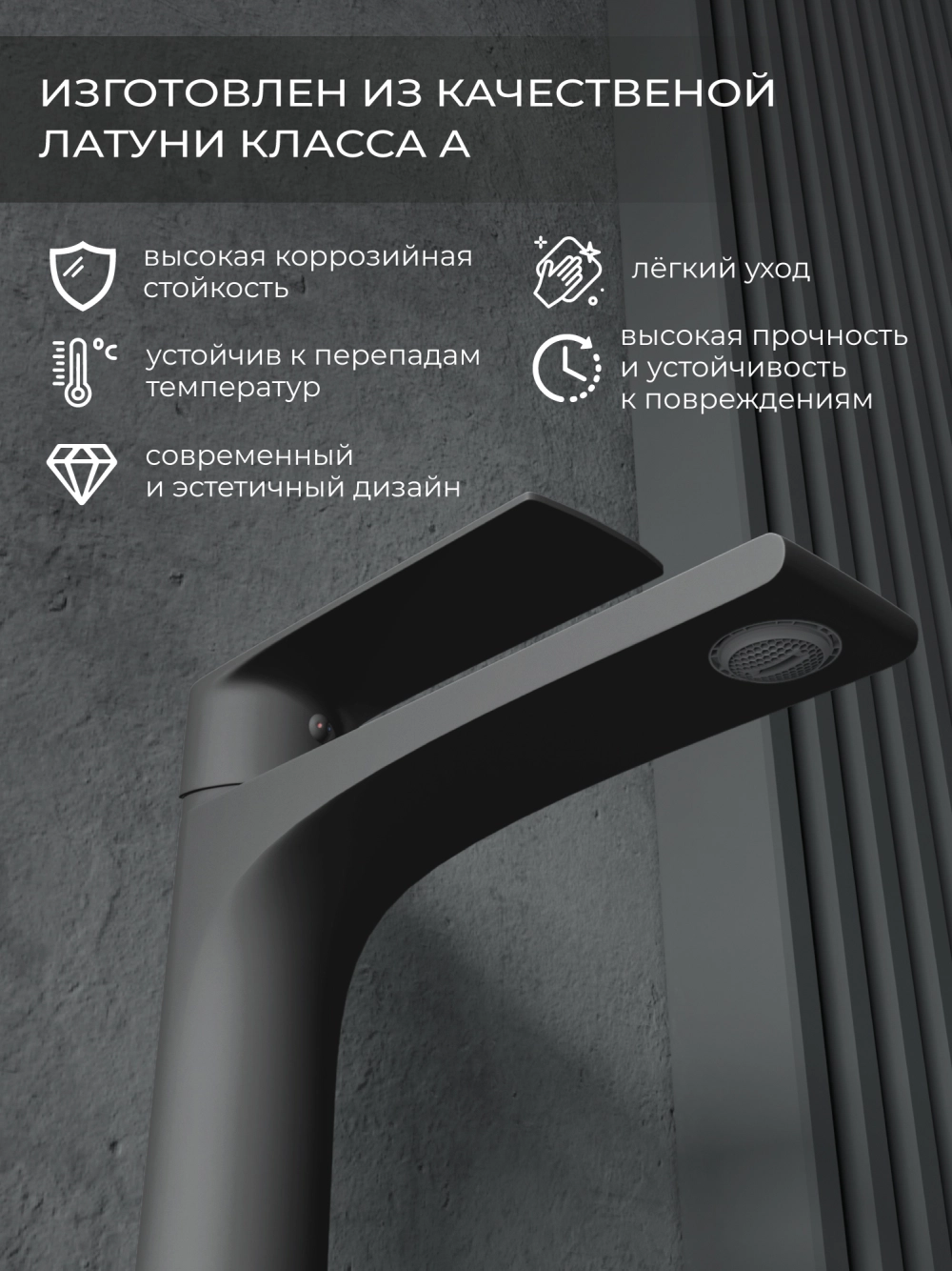 Смеситель для раковины в ванную Itana Water керамический картридж, черный