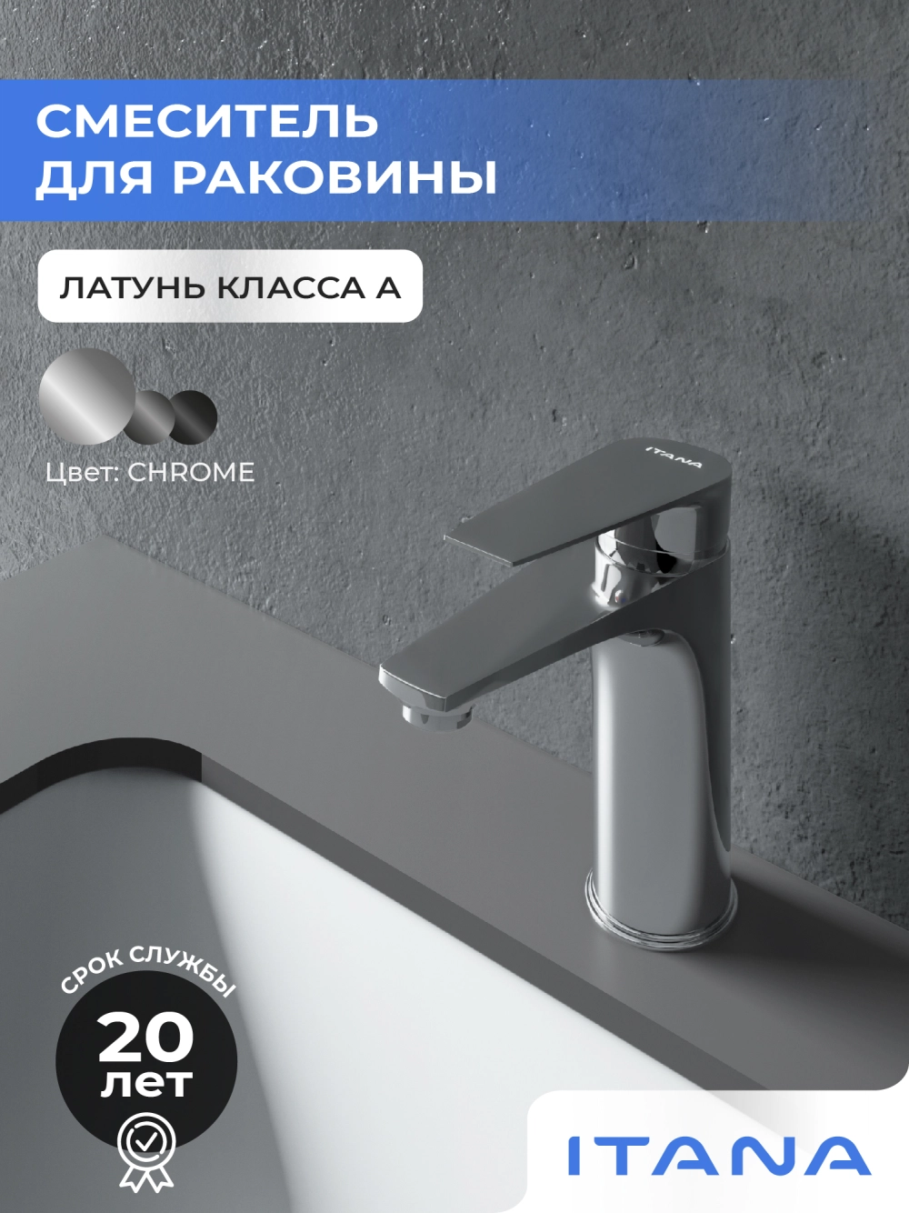 Смеситель для раковины в ванную Itana Water керамический картридж, хром
