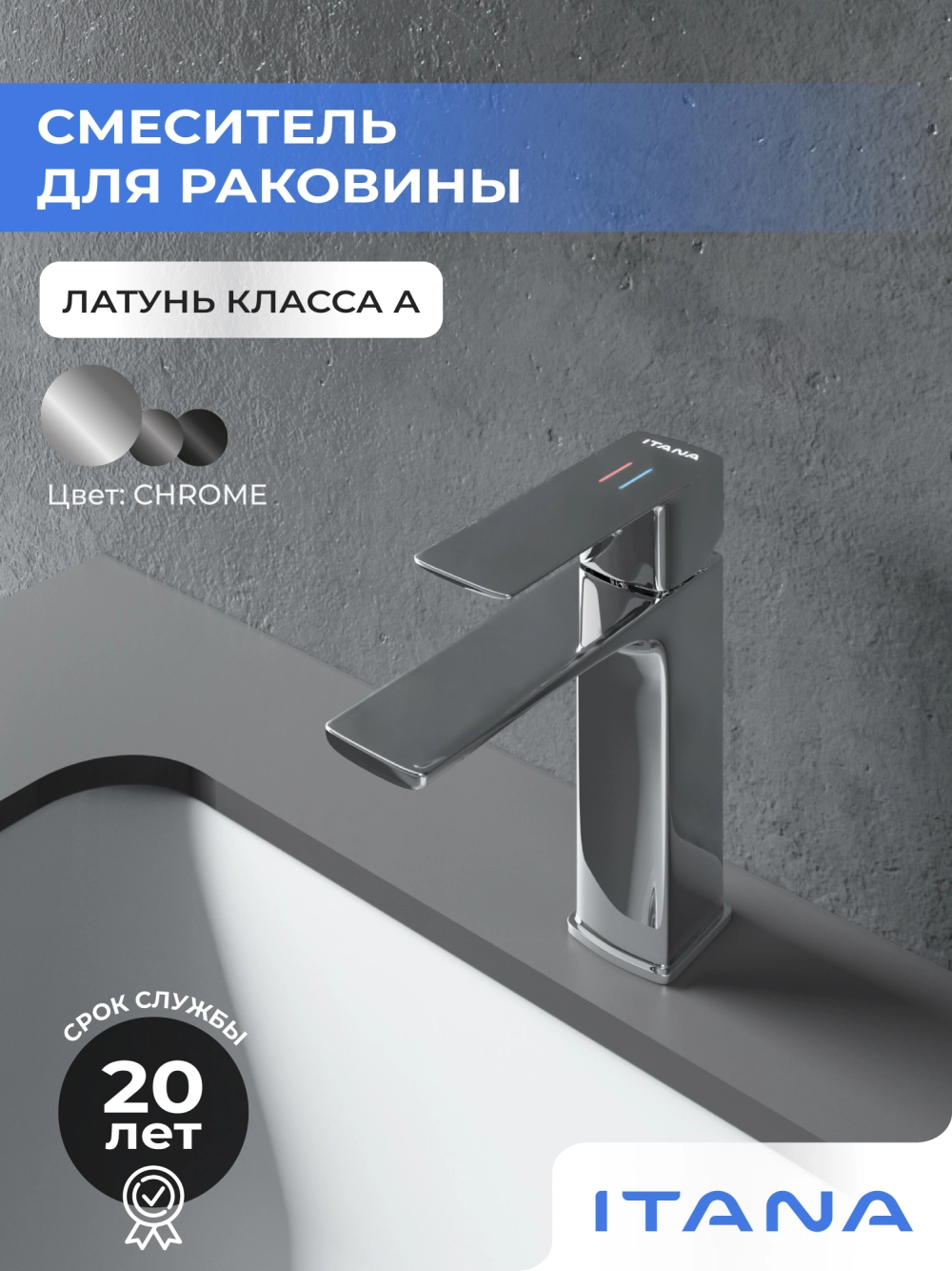 Смеситель для раковины в ванную Itana Water керамический картридж, хром