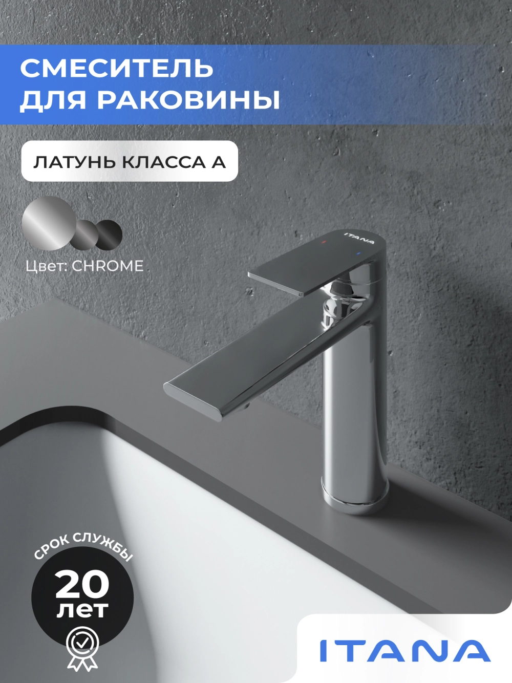 Смеситель для раковины в ванную Itana Water керамический картридж, хром