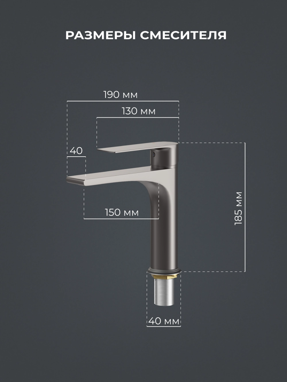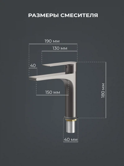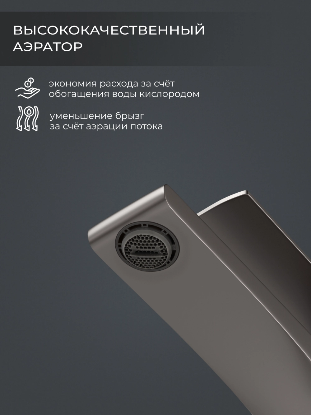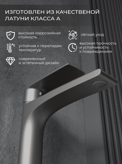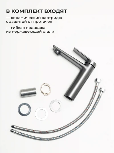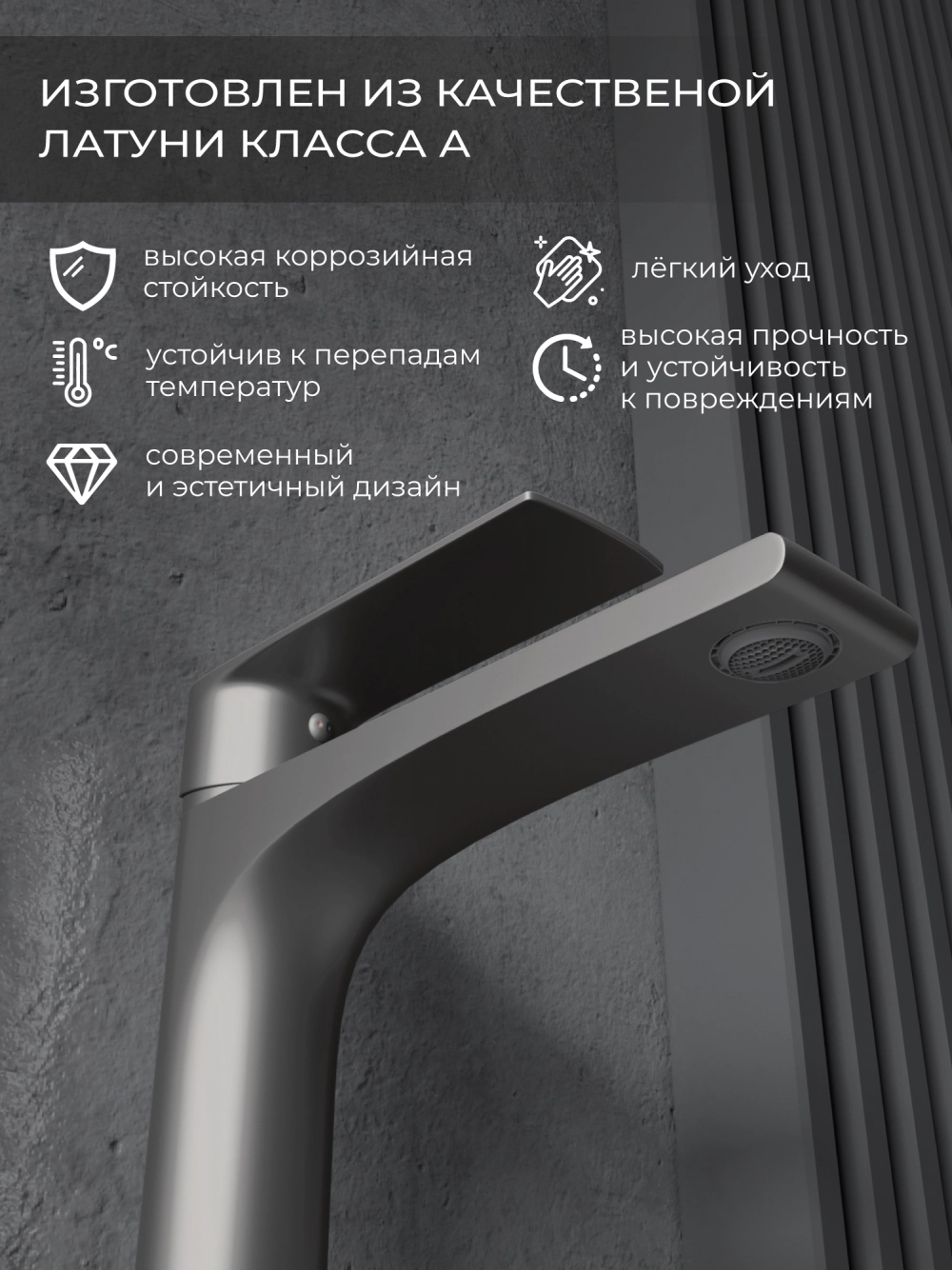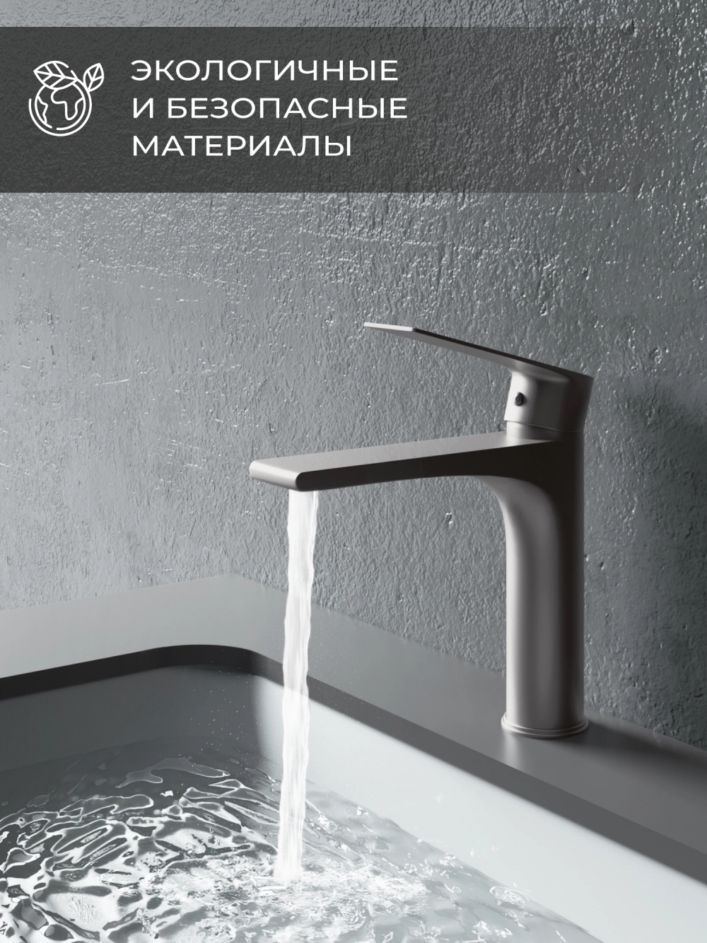 Смеситель для раковины в ванную Itana Water керамический картридж, оружейная сталь