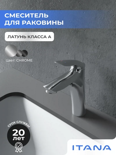 Смеситель для раковины в ванную Itana Wave керамический картридж, хром