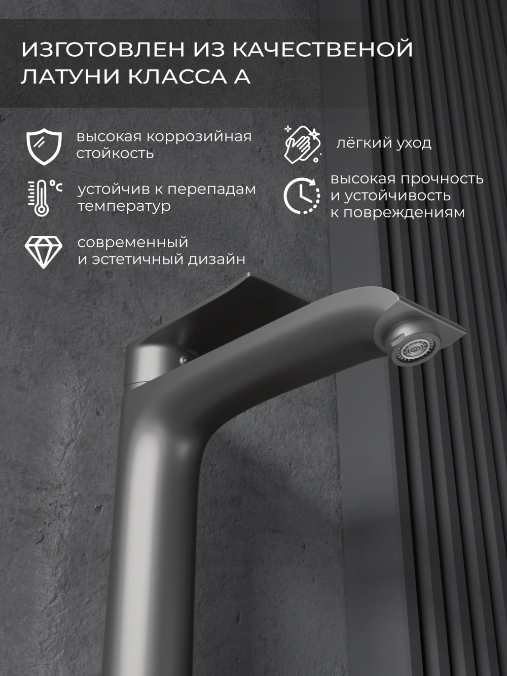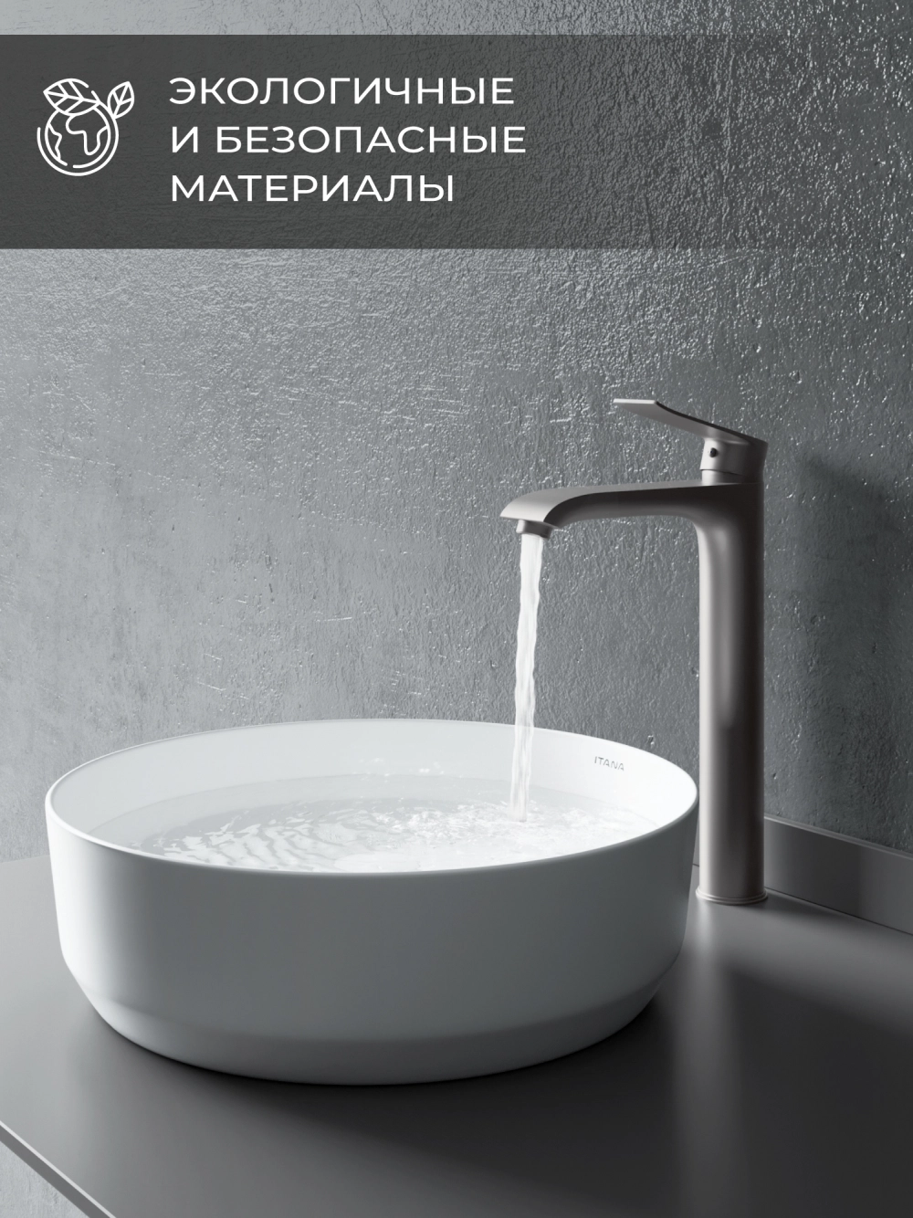 Смеситель для раковины в ванную Itana Aqva 3404 керамический картридж, оружейная сталь