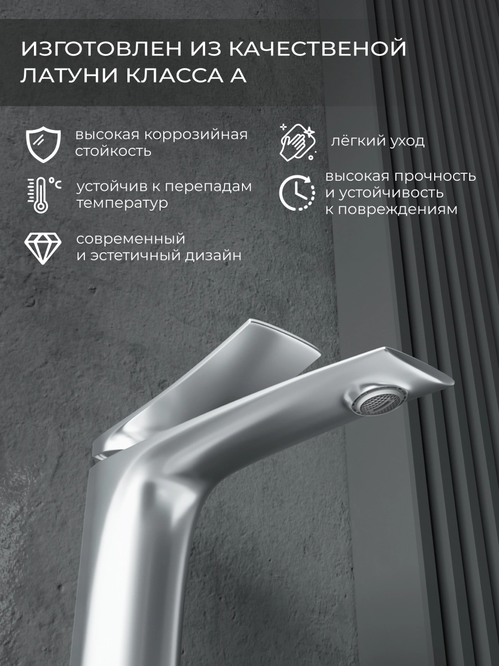 Элегантный смеситель для раковины Itana Aqva 5701 выполнен из прочной латуни с антикоррозийным хромированным покрытием, гарантирующим долгую службу даже в условиях повышенной влажности. Компактный дизайн с оптимальной длиной и высотой излива обеспечивает удобство использования и универсальную адаптивность к разным формам раковин. Модель оснащена керамическим картриджем, который позволяет точно регулировать температурный режим и интенсивность водяного потока. Простая монолитная конструкция рычажного управления с одним центральным отверстием упрощает монтаж и идеально сочетается со стилистикой современных интерьеров. Эргономичные ручки обеспечивают комфортное управление, а матовый блестящий финиш легко моется и сохраняет презентабельный вид годами. Вид крепление смесителя - на гайке. Смеситель с изливом (высота излива -109мм.). Диаметр монтажных отверстий - 32мм. Стандарт подводки шланга 1/2 дюйма. Гарантийный срок - 2 года. Страна-изготовитель- Китай.