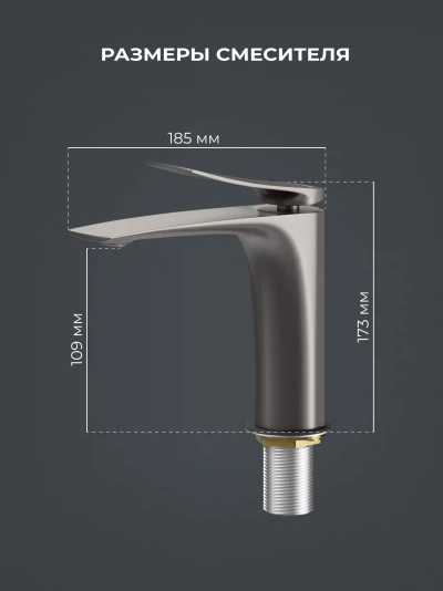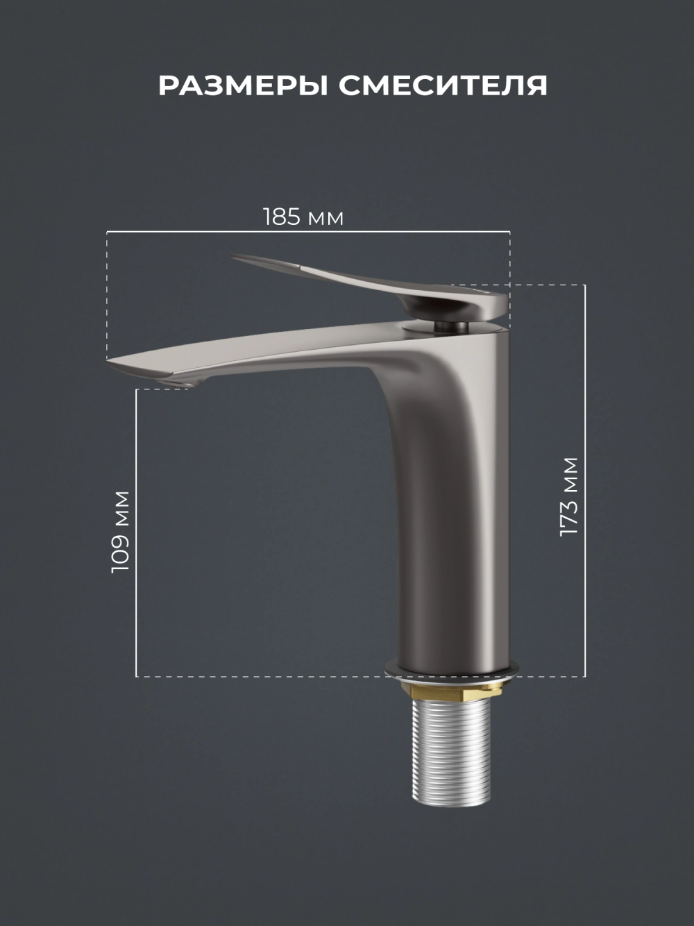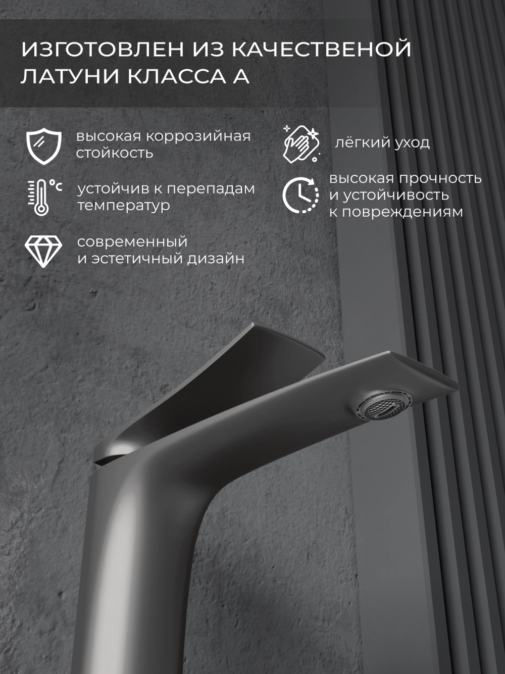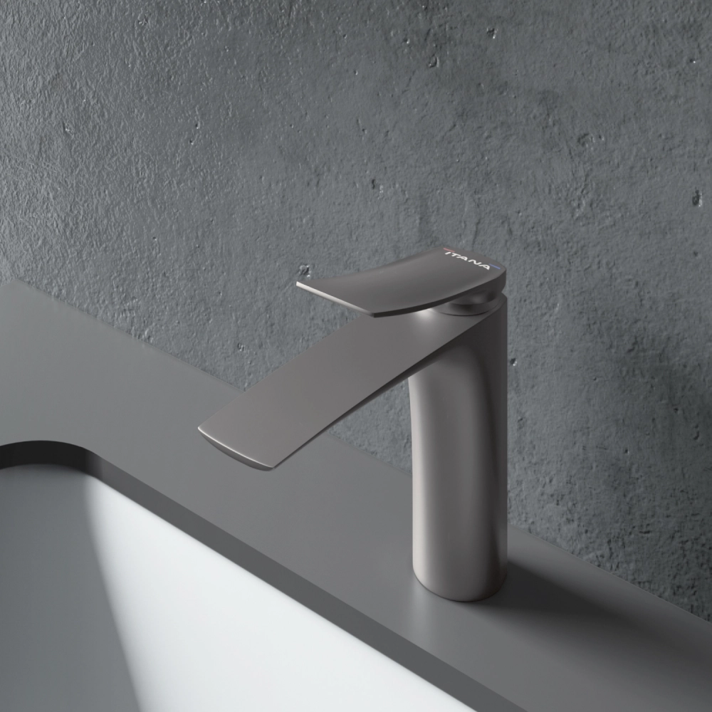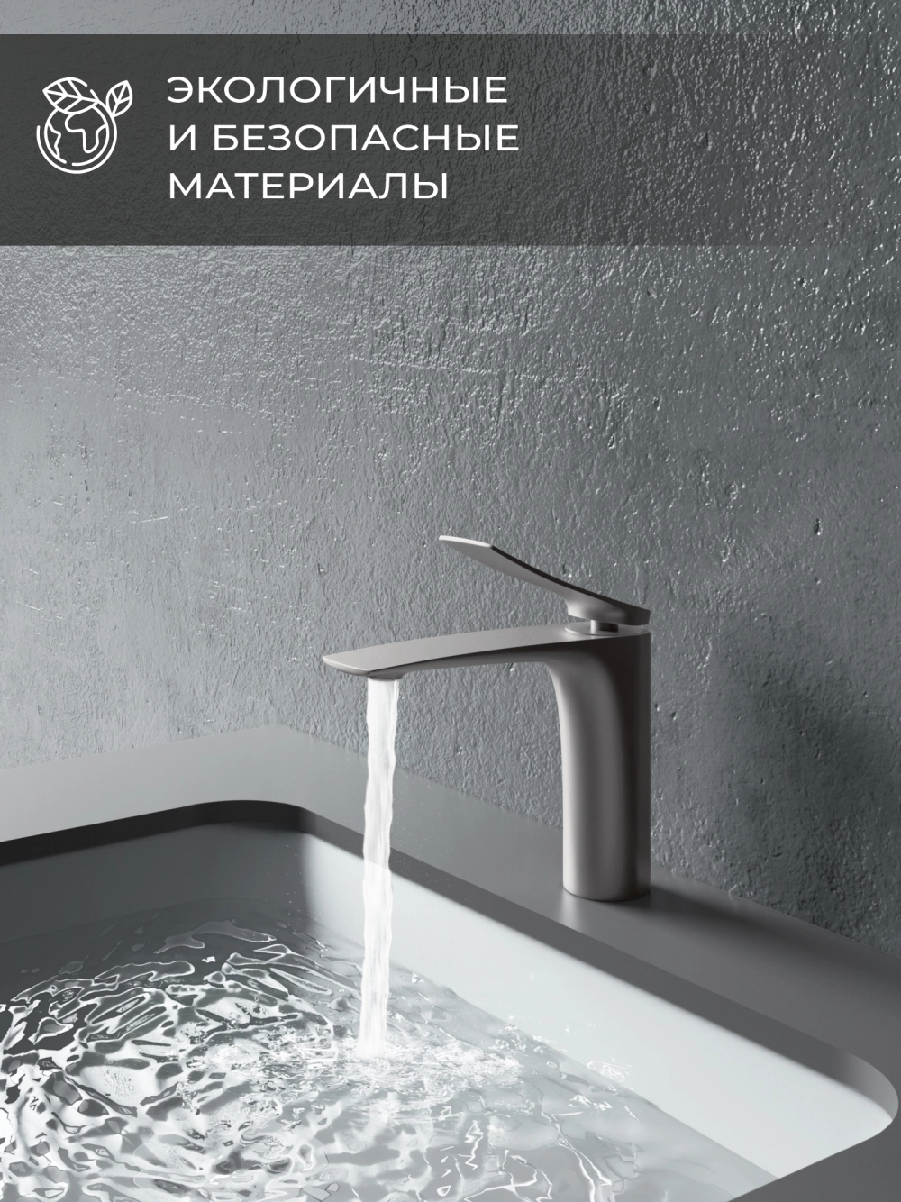 Смеситель для раковины в ванную Itana Aqva 5701 керамический картридж, оружейная сталь