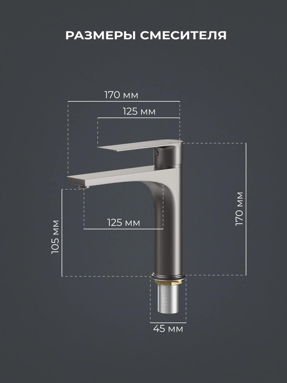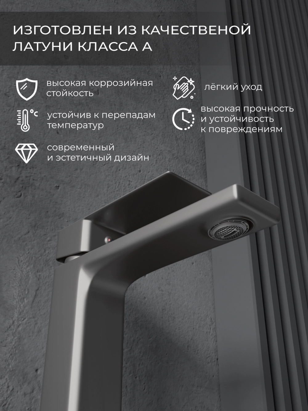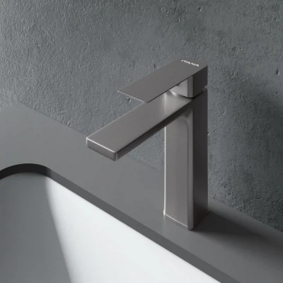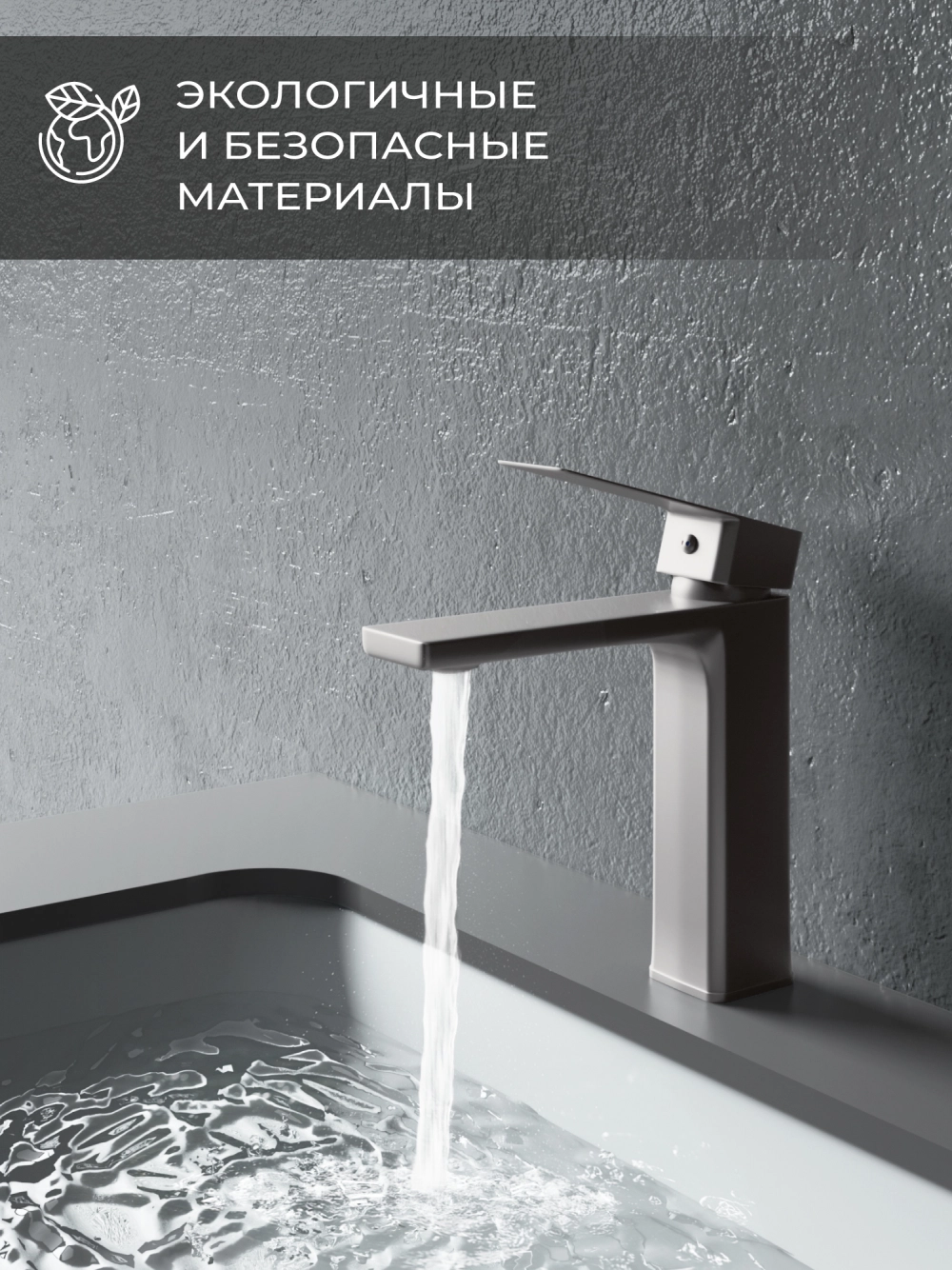 Смеситель для раковины в ванную Itana Rain 758 керамический картридж, оружейная сталь