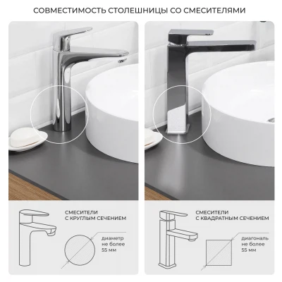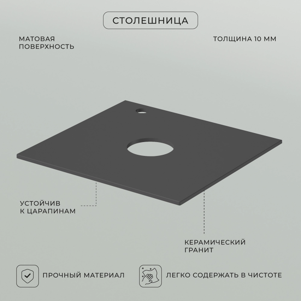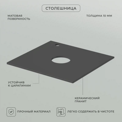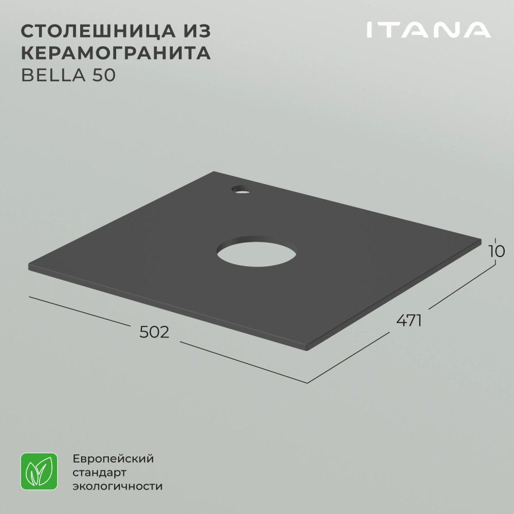Столешница из керамогранита Итана Bella. Толщина столешницы 10 мм. Устойчива к царапинам. Керамогранит - это чрезвычайно твердая поверхность, не подверженная травлению, окрашиванию и другим повреждениям, которые повседневная жизнь может нанести. Столешница Bella один из стилеобразующих элементов интерьера ванной комнаты, устойчива к постоянной повышенной влажности. Столешница из керамогранита доставляется в надежной упаковке.