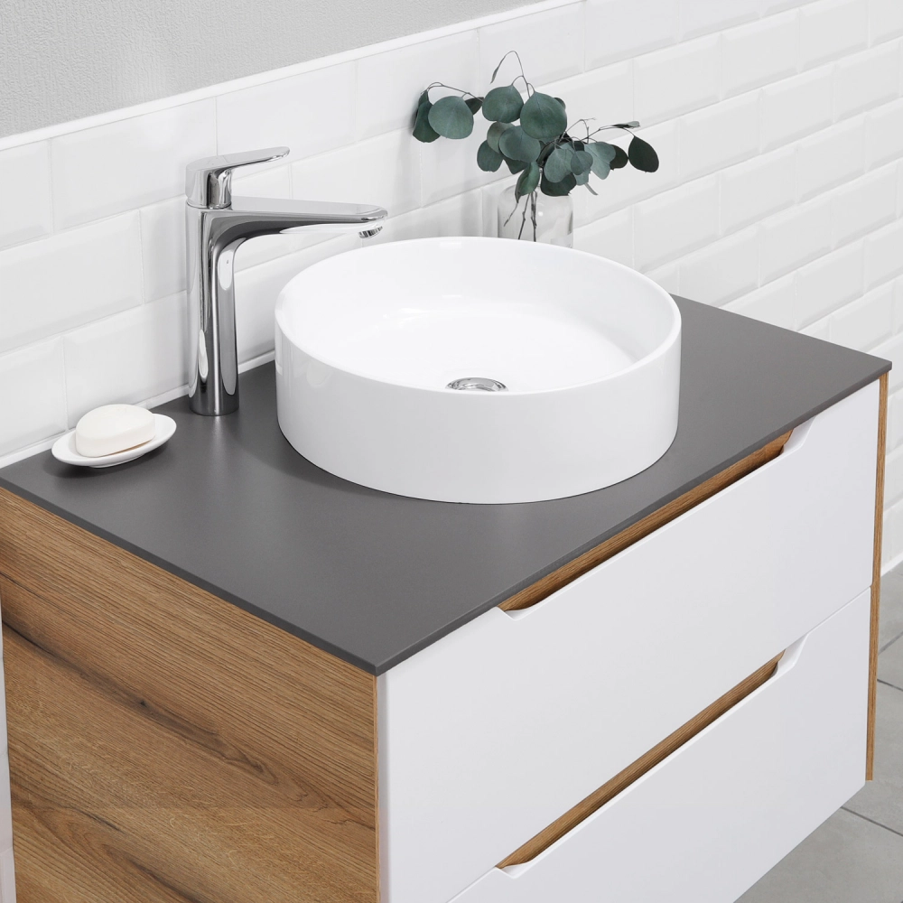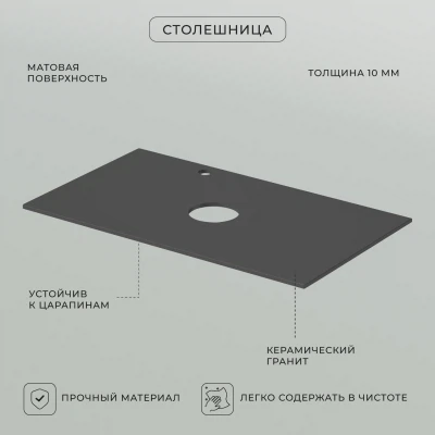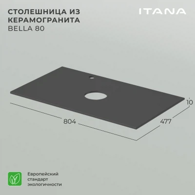 Столешница из керамогранита Итана Bella. Толщина столешницы 10 мм. Устойчива к царапинам. Керамогранит - это чрезвычайно твердая поверхность, не подверженная травлению, окрашиванию и другим повреждениям, которые повседневная жизнь может нанести. Столешница Bella один из стилеобразующих элементов интерьера ванной комнаты, устойчива к постоянной повышенной влажности. Столешница из керамогранита доставляется в надежной упаковке.