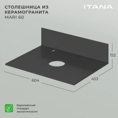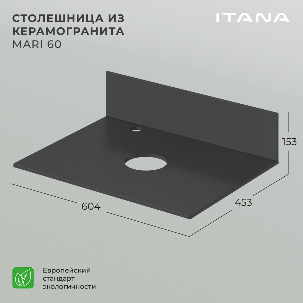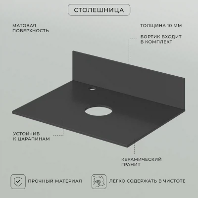 Столешница из керамогранита Итана Mari. Толщина столешницы 10 мм. Устойчива к царапинам. Керамогранит - это чрезвычайно твердая поверхность, не подверженная травлению, окрашиванию и другим повреждениям, которые повседневная жизнь может нанести. Столешница Mari один из стилеобразующих элементов интерьера ванной комнаты, устойчива к постоянной повышенной влажности. Столешница из керамогранита доставляется в надежной упаковке.