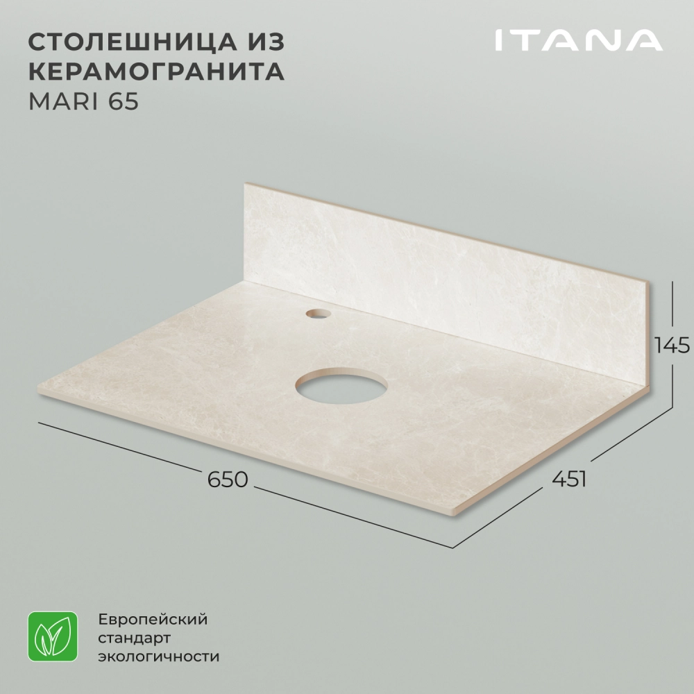 Долго выбирала раковину в ванную, но зайдя в магазин Itana, сразу поняла, что здесь я точно найду то, что мне понравится. Столешница светлая, очень хорошо подошла под выбранную тумбу. Нравится, что уже имеются отверстия для смесителя и сифона. Все идеально подошло. Раковина на столешницу села замечательно. Благодарю консультанта Елену ща помощь в выборе товара!