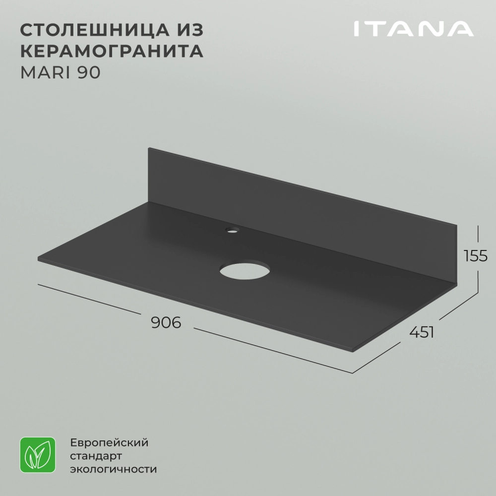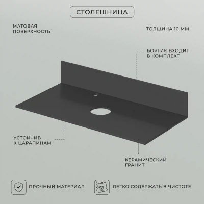 Столешница из керамогранита Итана Mari. Толщина столешницы 10 мм. Устойчива к царапинам. Керамогранит - это чрезвычайно твердая поверхность, не подверженная травлению, окрашиванию и другим повреждениям, которые повседневная жизнь может нанести. Столешница Mari один из стилеобразующих элементов интерьера ванной комнаты, устойчива к постоянной повышенной влажности. Столешница из керамогранита доставляется в надежной упаковке.