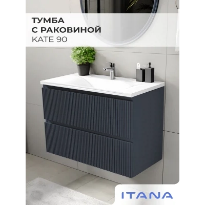 Тумба c раковиной подвесная Итана Kate 90 с выдвижными ящиками Антрацит