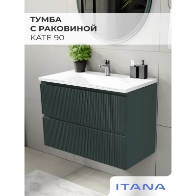 Тумба c раковиной подвесная Итана Kate 90 с выдвижными ящиками Веллюто Авокадо