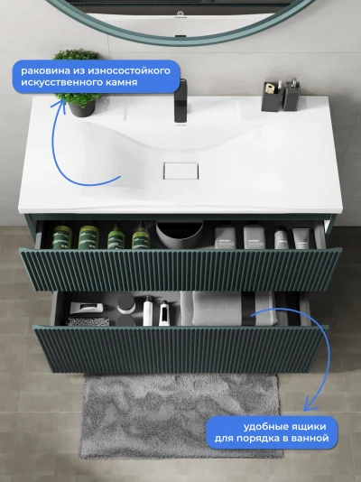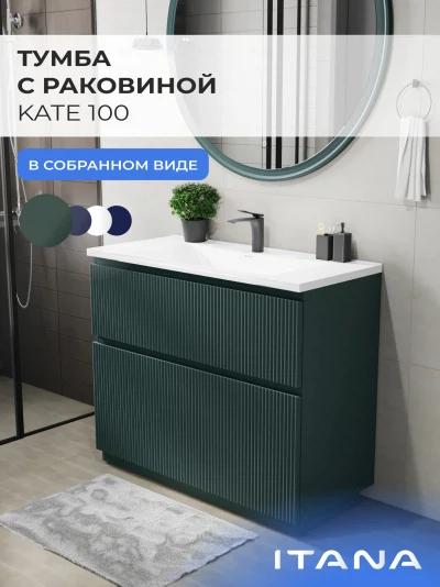 Тумба c раковиной напольная Итана Kate 100 с выдвижными ящиками Веллюто Авокадо