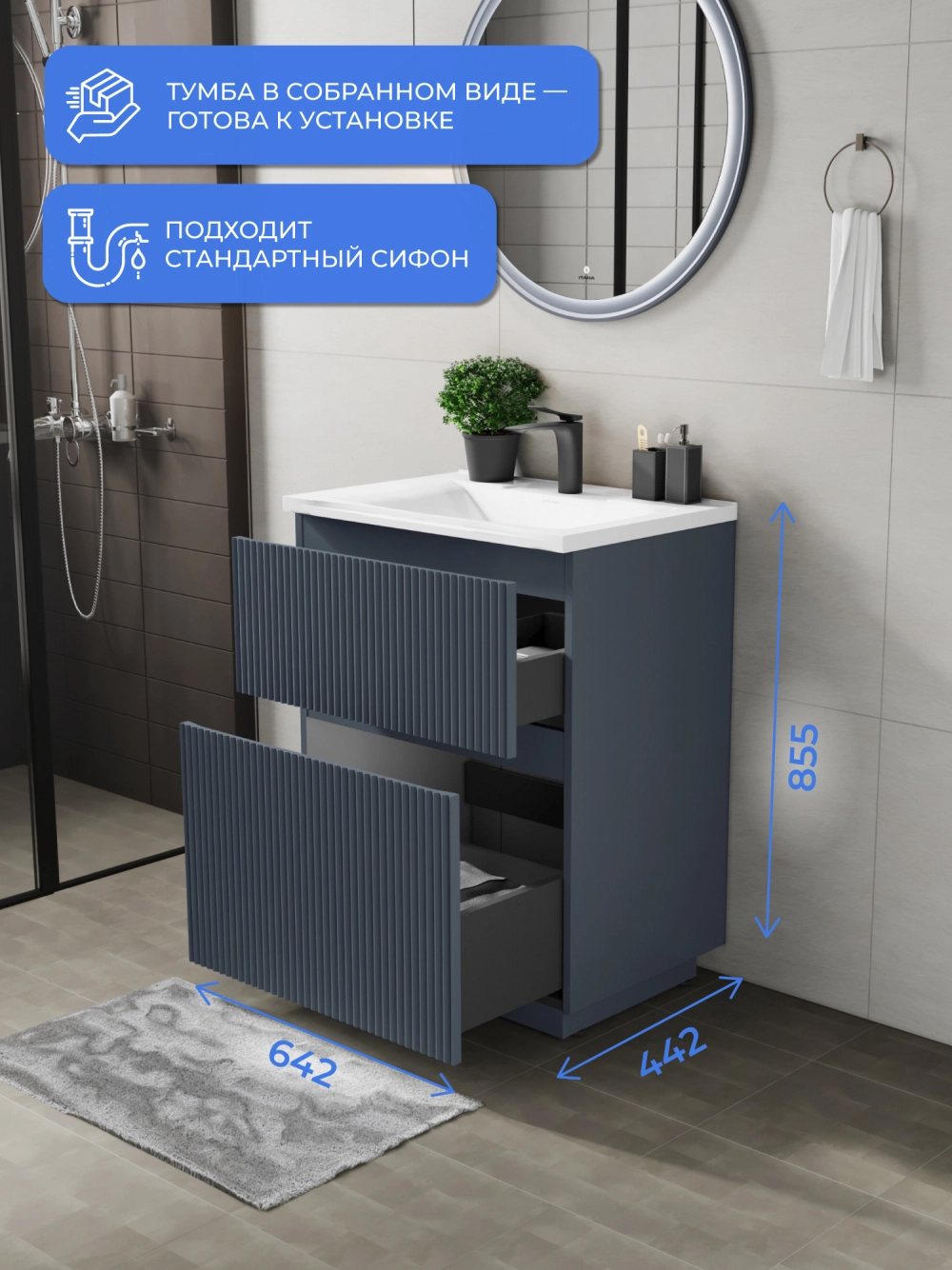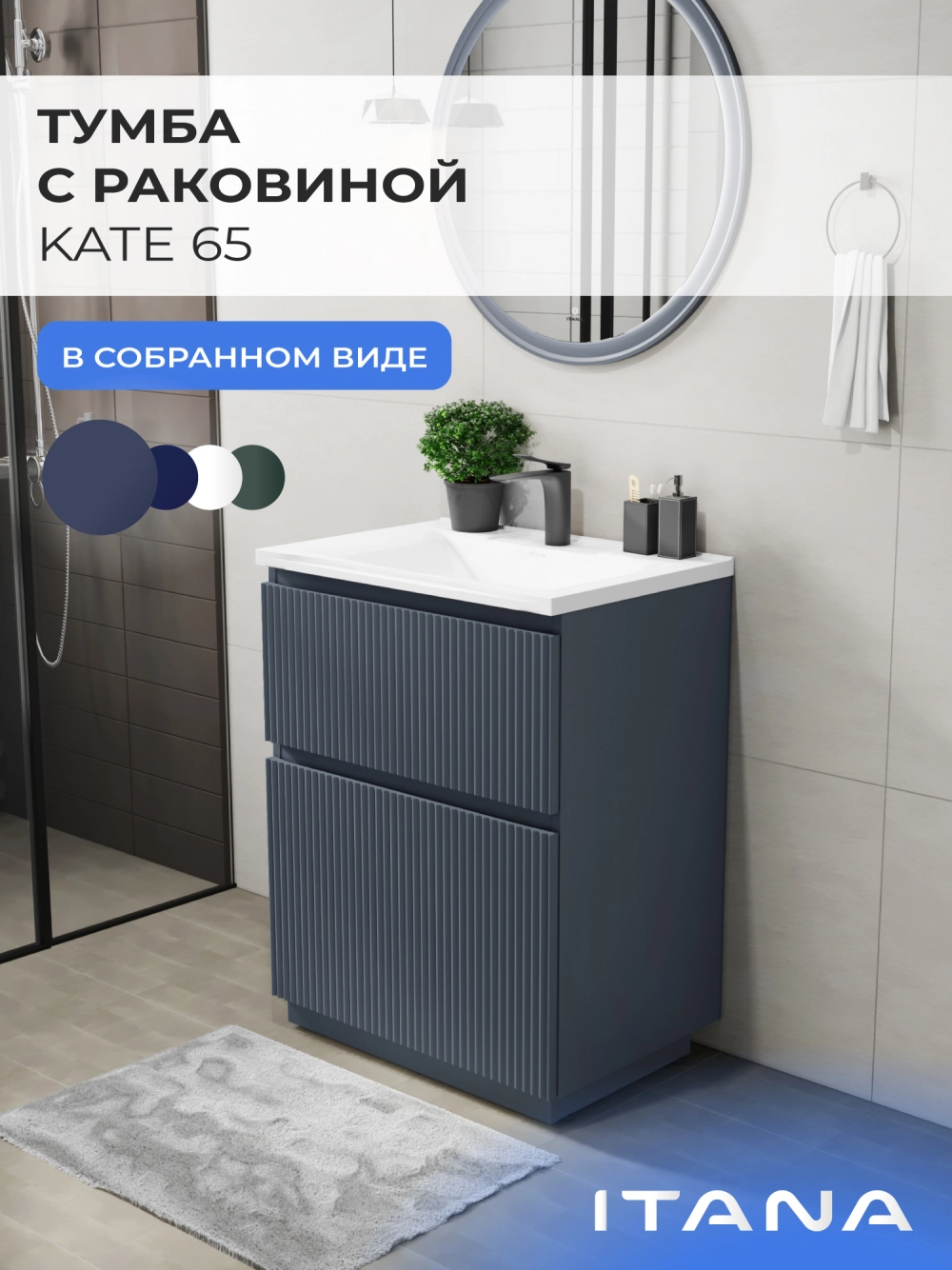 Тумба c раковиной напольная Итана Kate 65 с выдвижными ящиками Антрацит