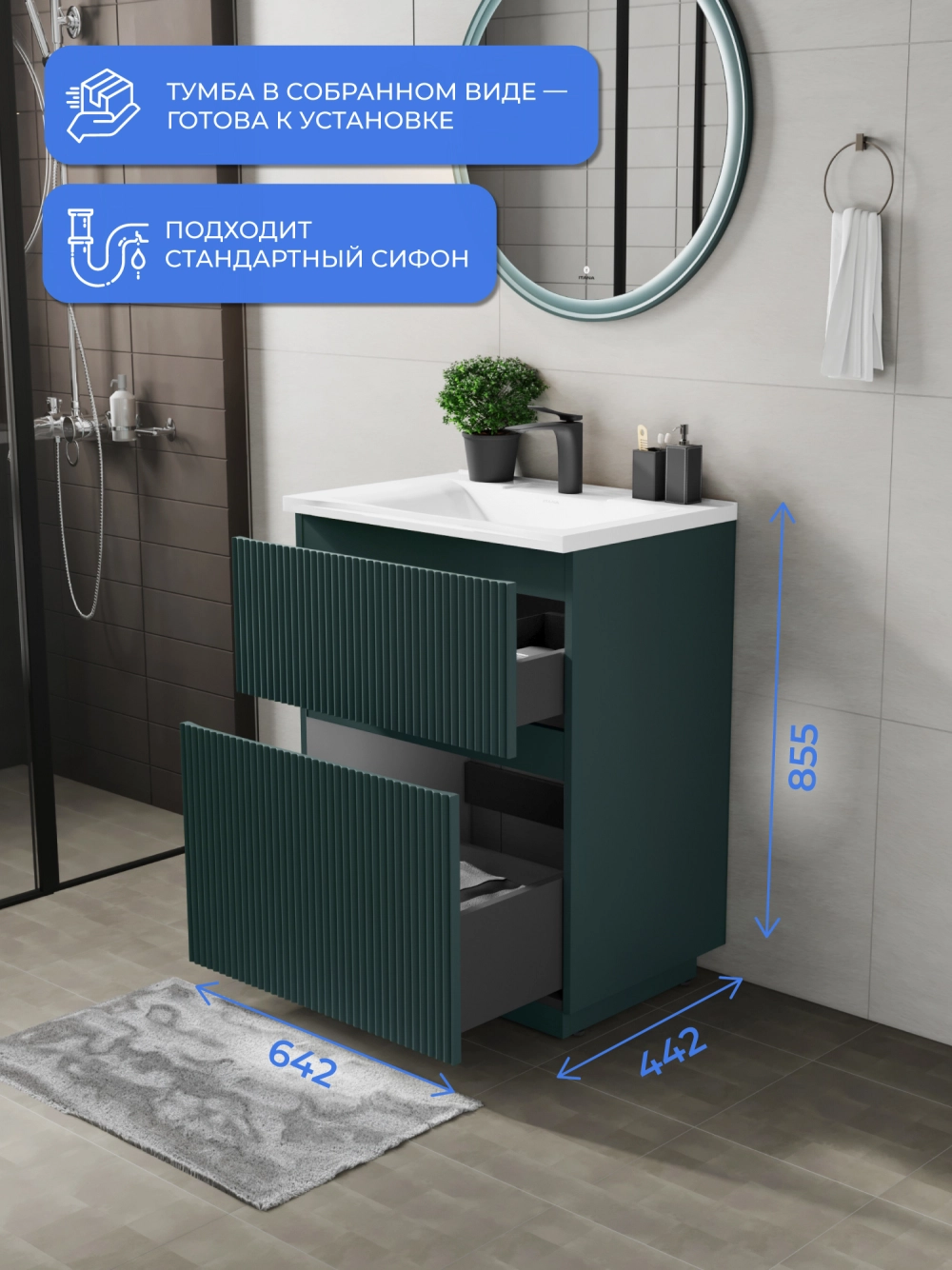 Тумба c раковиной напольная Итана Kate 65 с выдвижными ящиками Веллюто Авокадо