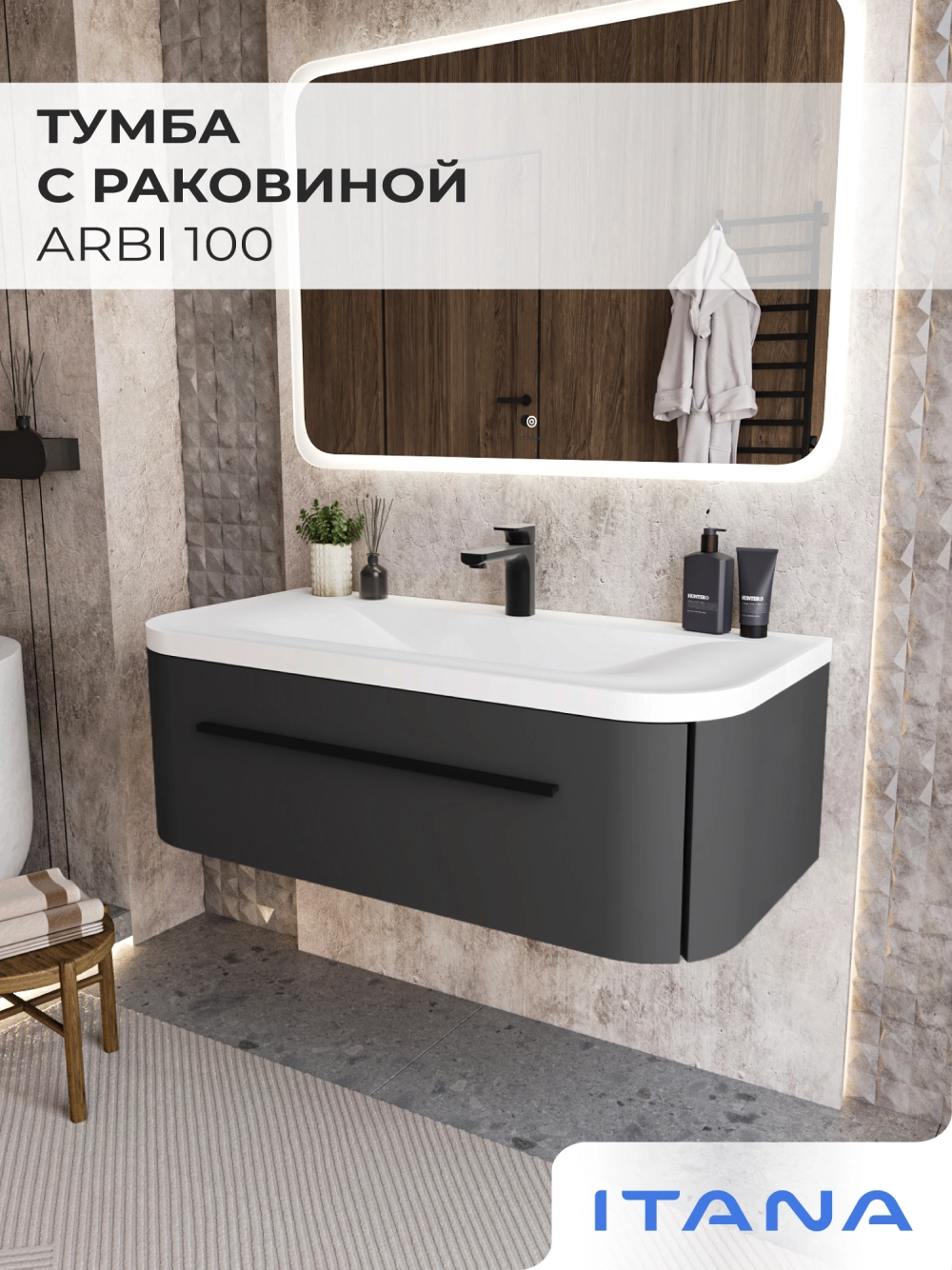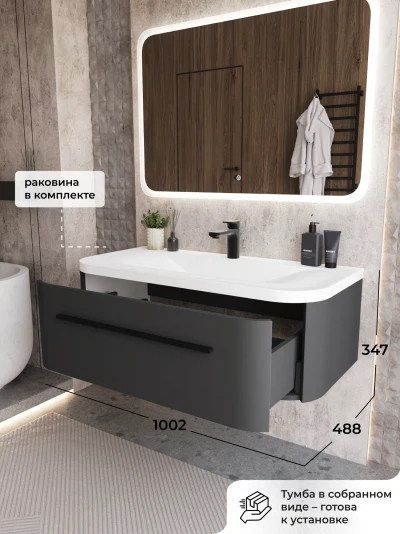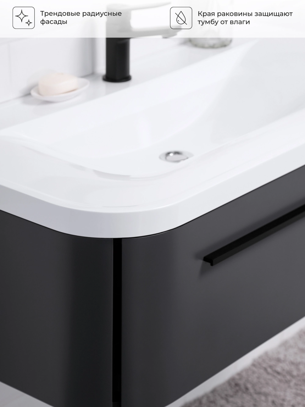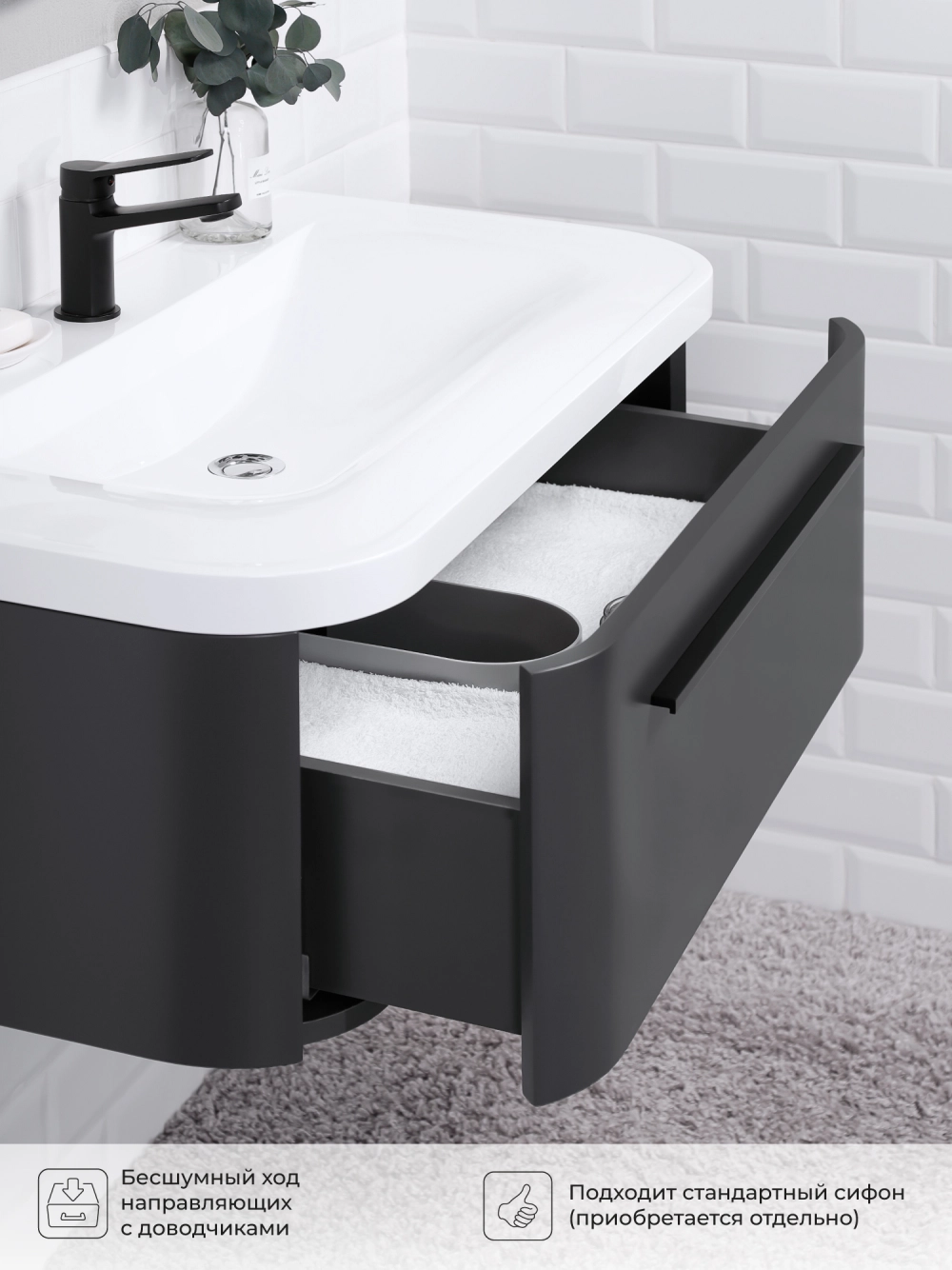 Тумба c раковиной подвесная Итана Арби 100 с радиусным фасадом Эмаль Графит