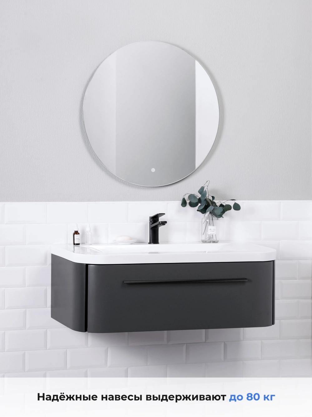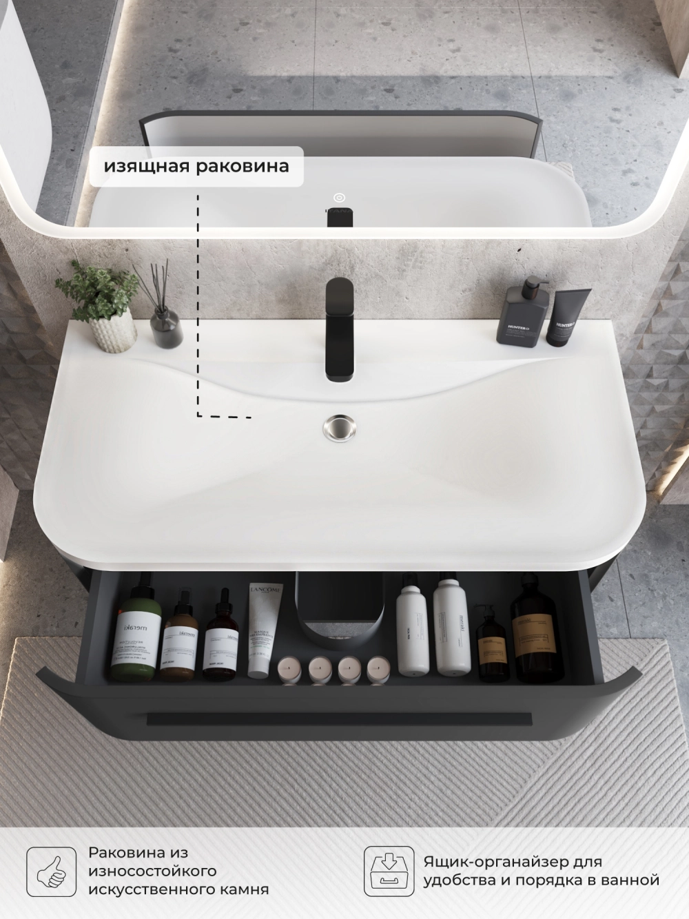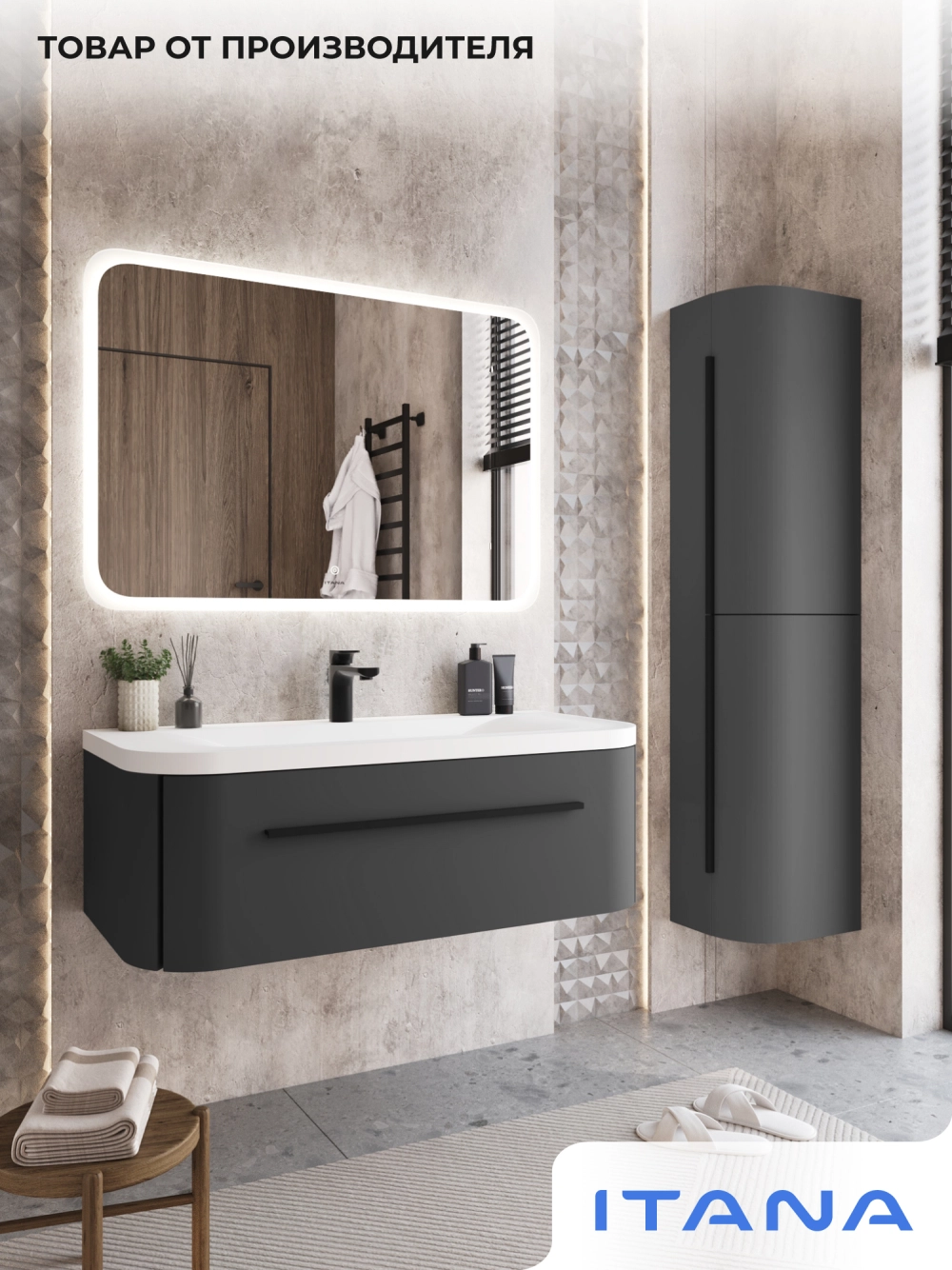Тумба c раковиной подвесная Итана Арби 100 с радиусным фасадом Эмаль Графит