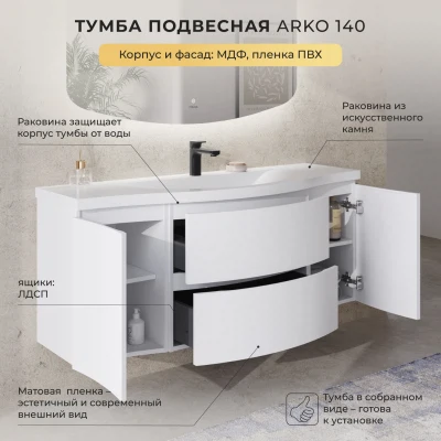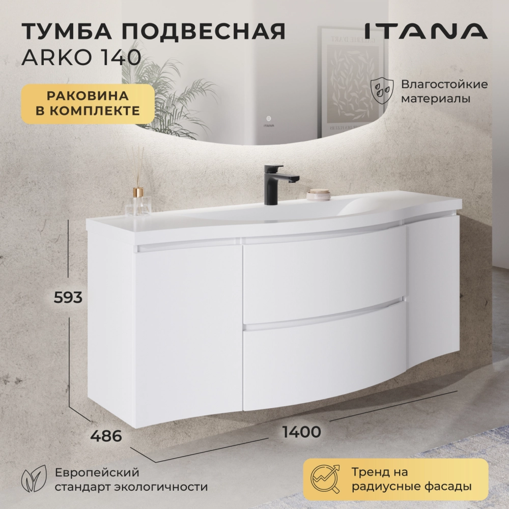 Тумба c раковиной подвесная Итана Arko 140 с радиусными фасадами Бланж
