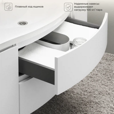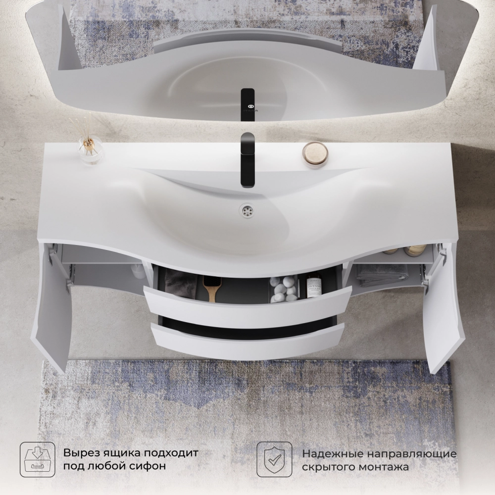Тумба с раковиной Итана Arko 140 станет не только стильным акцентом для вашей ванной комнаты, но и обеспечит максимальную функциональность и удобство в использовании. Эстетически привлекательный дизайн с радиусными фасадами подчеркивает современный стиль интерьера. Благодаря подвесной конструкции, такая мебель значительно упрощает уборку, обеспечивая легкий доступ к полу. Великолепное сочетание формы и функциональности делает эту тумбу с раковиной отличным выбором как для семей, так и для индивидуального использования. Удобство использования обеспечивает хорошо продуманная раковина, которая гармонично сочетается с тумбой и создаёт единый ансамбль. Мебель изготовлена из высококачественных материалов, что гарантирует долгий срок службы и сохранность внешнего вида на протяжении многих лет. Ценителям эстетики и практичности понравится емкость и анатомически правильная конструкция ящиков, которые позволяют удобно сортировать и хранить всевозможные принадлежности для ванной комнаты. Устанавливая подвесную тумбу для ванной, можно добиться эргономичного и оптимального использования пространства, избегая загромождения. Подвесная тумба для ванной комнаты Итана Arko 140 идеально подходит для тех, кто ценит высокое качество и стремится к функциональной организации своей ванной. Эта раковина с тумбой станет важным элементом вашего интерьера, благодаря своей элегантности и удобству. Продуманное до мелочей исполнение фасадов, мягкость линий и современный дизайн делают её отличным дополнением к любой ванной комнате. Выбирая тумбу под раковину Итана Arko, вы получаете не только функциональный предмет мебели, но и стильный аксессуар, который придаст вашему дому новые краски и уют.