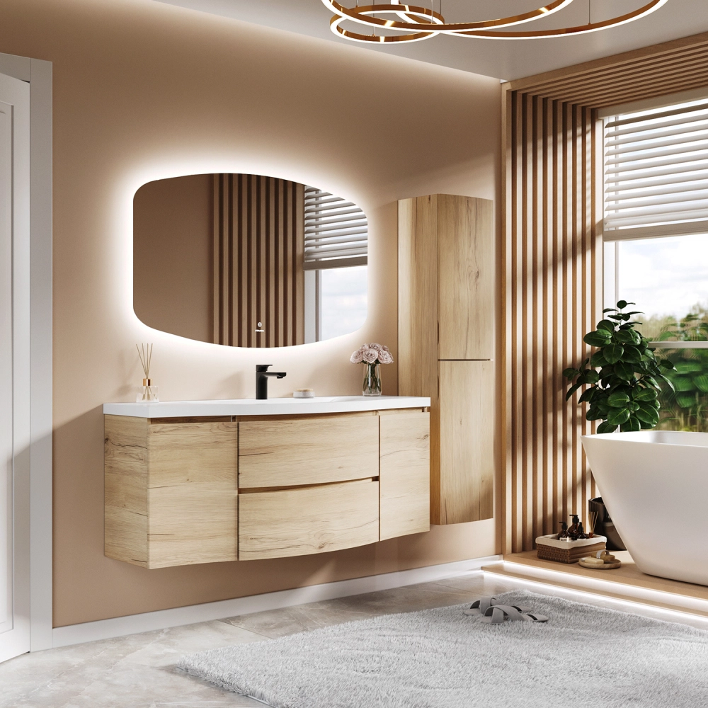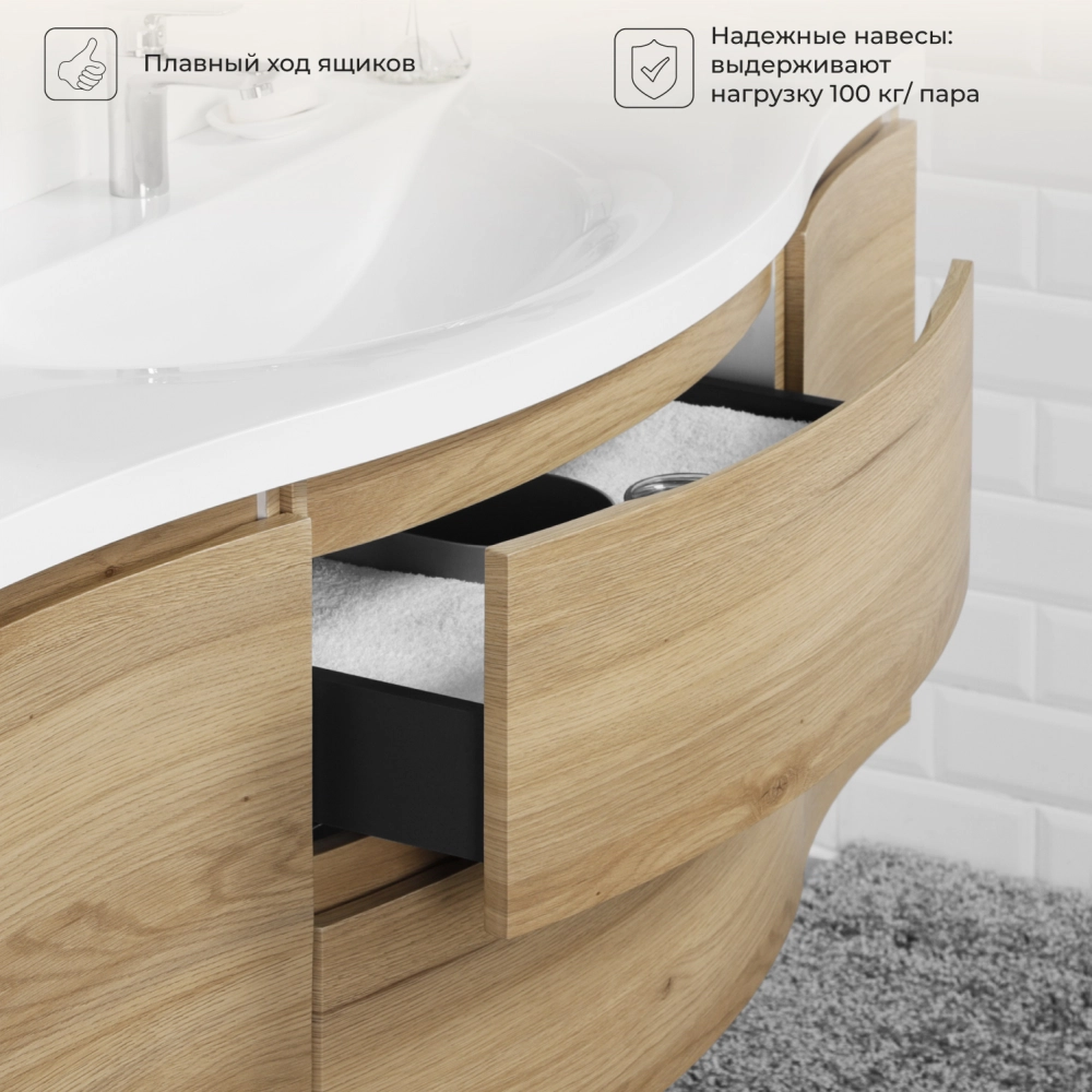 Тумба c раковиной подвесная Итана Arko 140 с радиусными фасадами Дуб Мавелла Голд