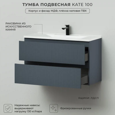 Тумба c раковиной подвесная Итана Kate 100 с выдвижными ящиками Антрацит