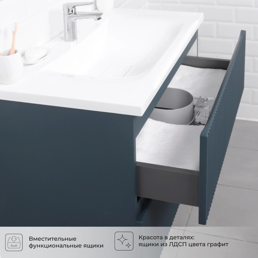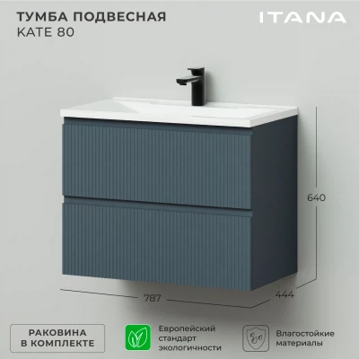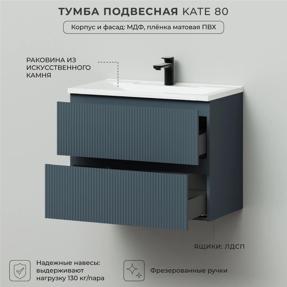 Тумба c раковиной подвесная Итана Kate 80 с выдвижными ящиками Антрацит