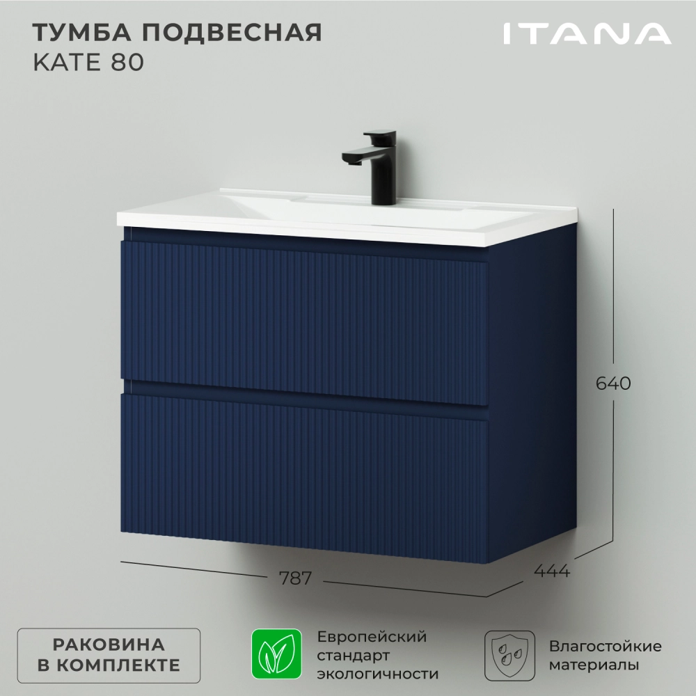Тумба c раковиной подвесная Итана Kate 80 с выдвижными ящиками Океания