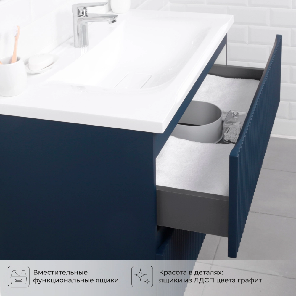 Подвесная тумба с раковиной из коллекции Kate станет настоящим украшением ванной комнаты в современном стиле. Навесной способ установки тумбы в ванную дает возможность не только визуально увеличить пространство, но и обеспечивает быстрый и удобный доступ для уборки. Размеры подвесной тумбы с раковиной 787*444*640 - идеальный выбор для ванной комнаты или туалета. Тумба для ванны изготовлена из МДФ и покрыта ПВХ пленкой, поэтому выдерживает высокие эксплуатационные нагрузки. Качественная фурнитура с доводчиками обеспечивает легкое открывание и плавное закрывание ящиков. Вырез под сифон универсальный, для любого типа. Благодаря своей конструкции тумба обеспечивает удобный доступ к раковине и позволяет скрыть коммуникации. Тумба с раковиной в ванную оснащена двумя удобными ящиками для хранения, что позволяет разместить всё необходимое под рукой. Раковина из искусственого камня– это безупречная гладкость поверхности, на которой не задерживаются загрязнения. Для точного выбора тумбы с раковиной в ванную комнату рекомендуем обратиться к схеме замеров, которая находится на фото в карточке товара, размеры изделия могут отличаться +/-1 см в связи со спецификой производства. Тумба для ванной доставляется в предварительно собранном виде, надежно упакована.