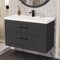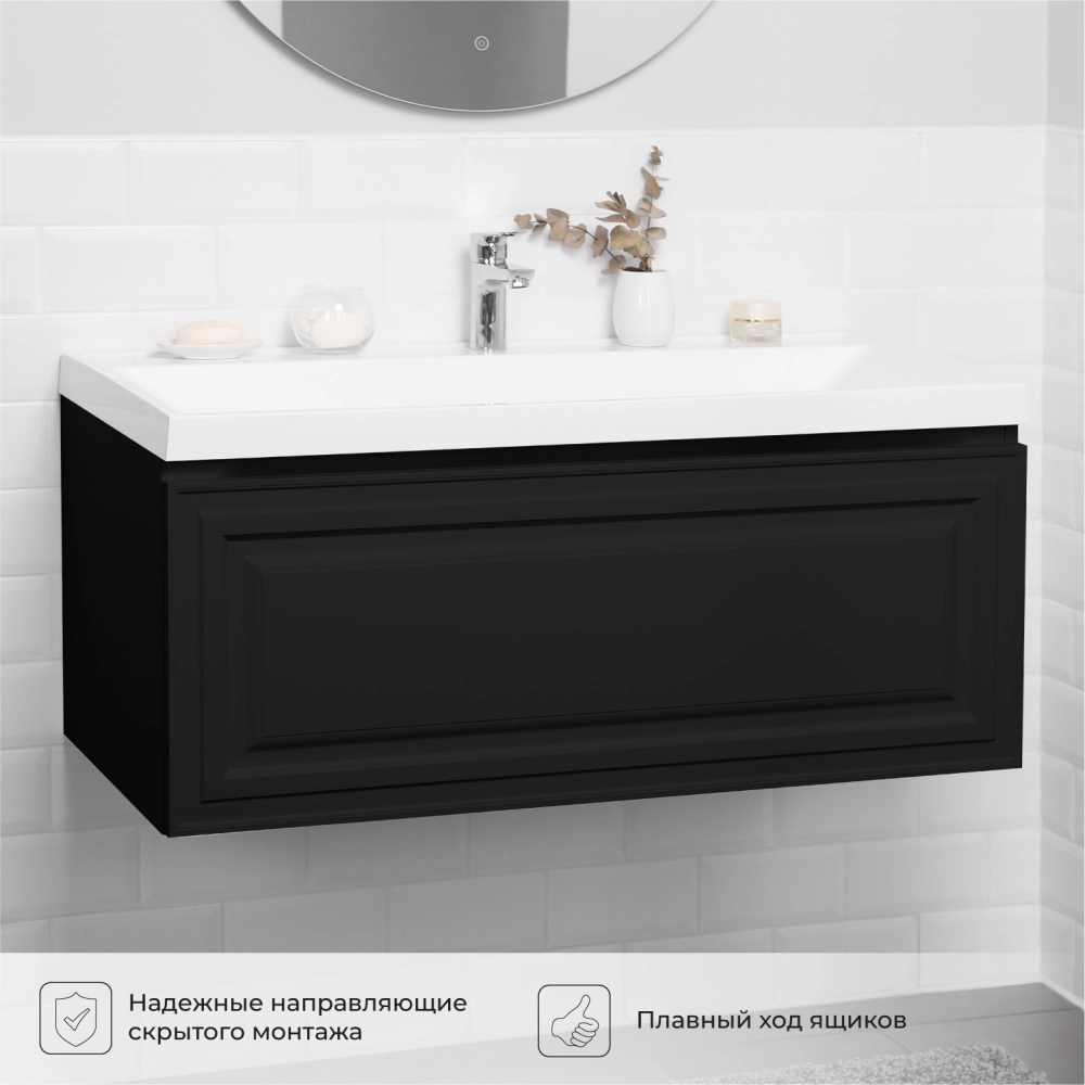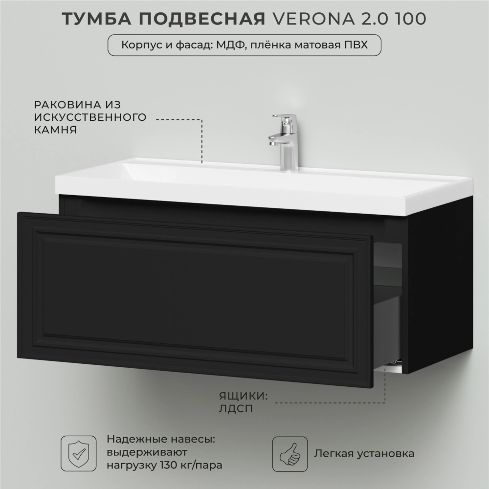Тумба c раковиной подвесная Итана Verona 2.0 100 с выдвижным ящиком Черный софт