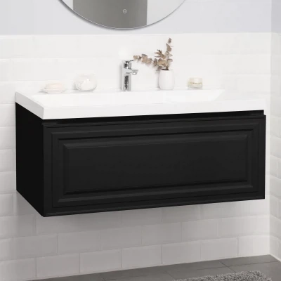 Тумба c раковиной подвесная Итана Verona 2.0 100 с выдвижным ящиком Черный софт