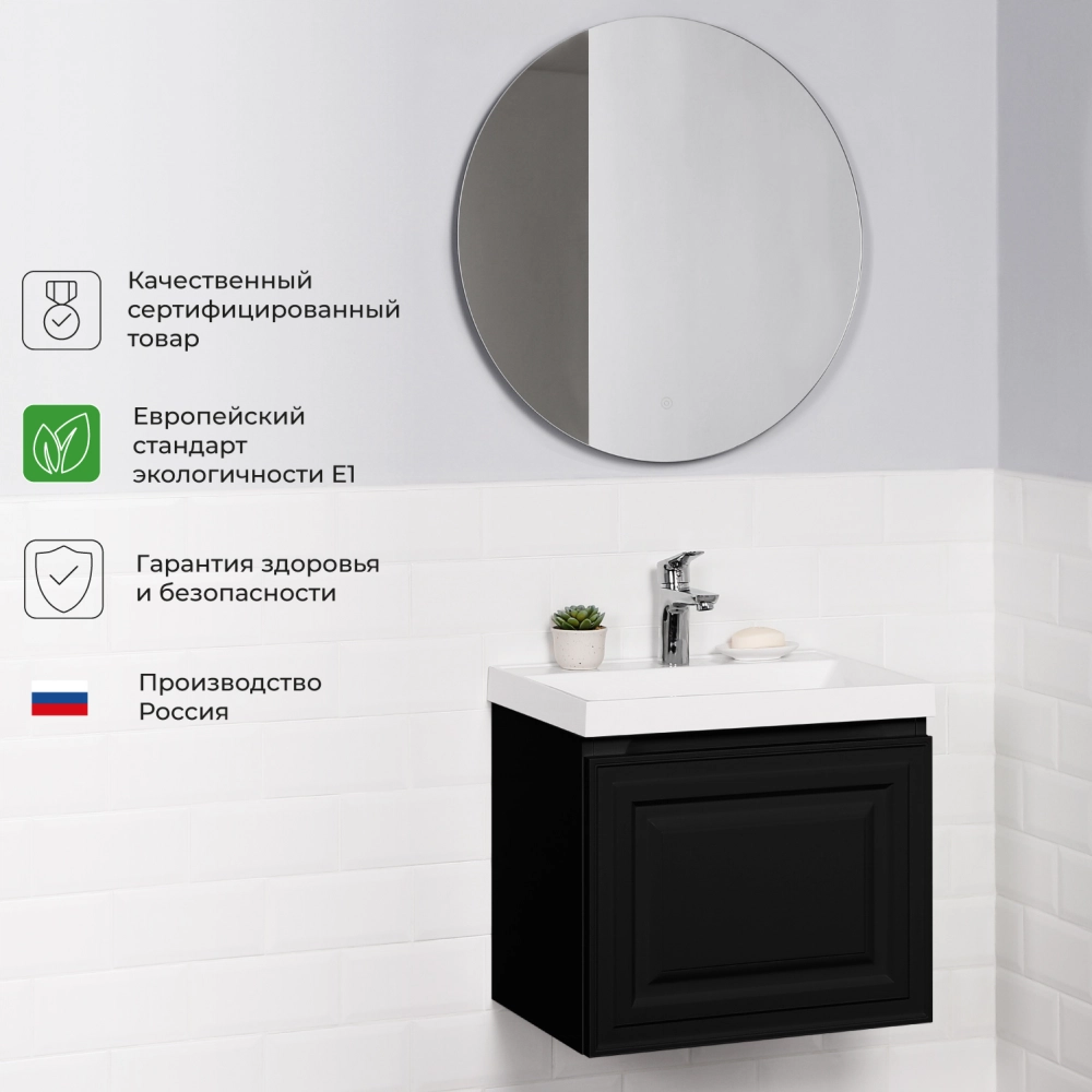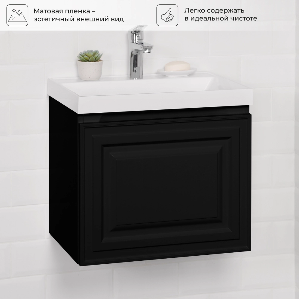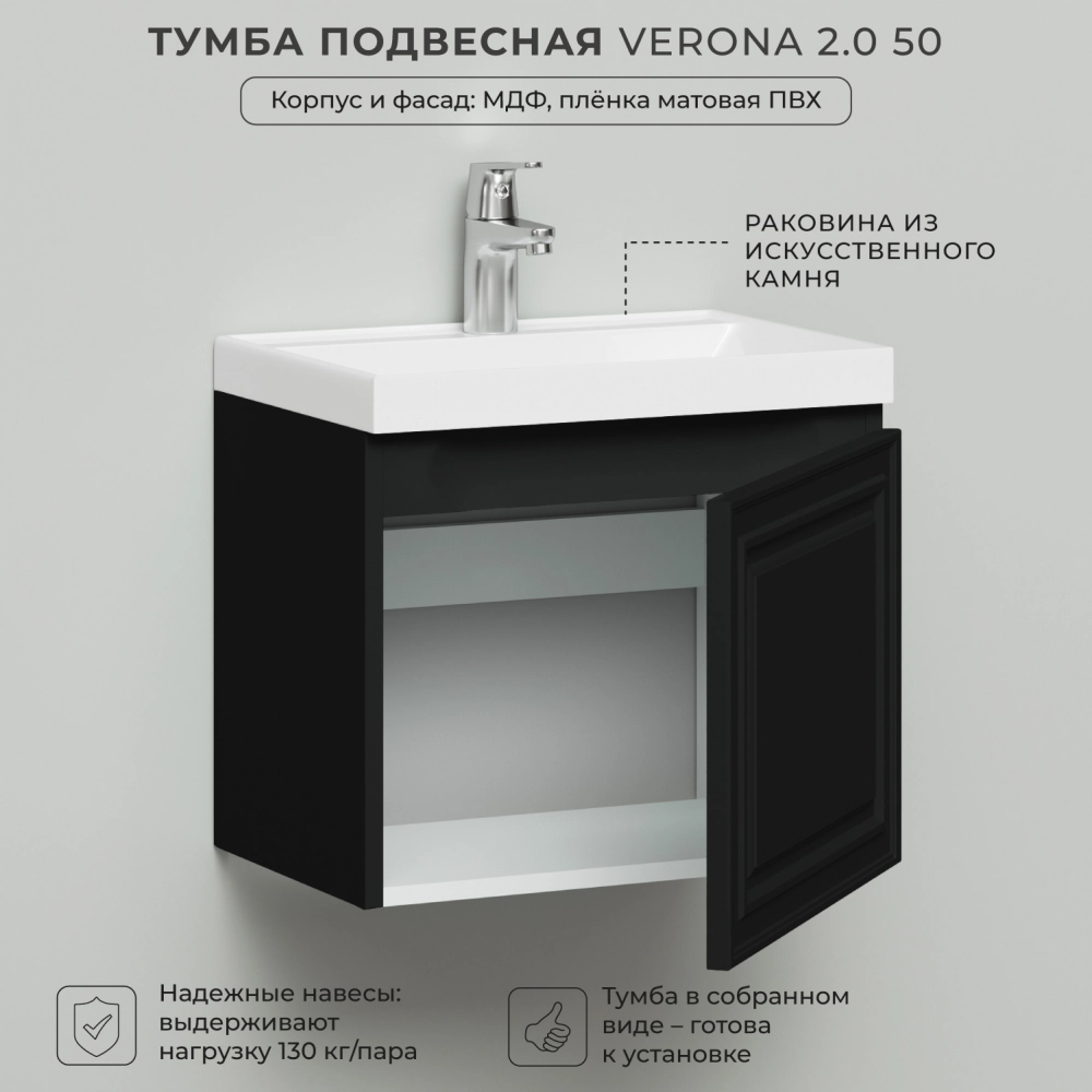Тумба c раковиной подвесная Итана Verona 2.0 50 с выдвижным ящиком Черный софт