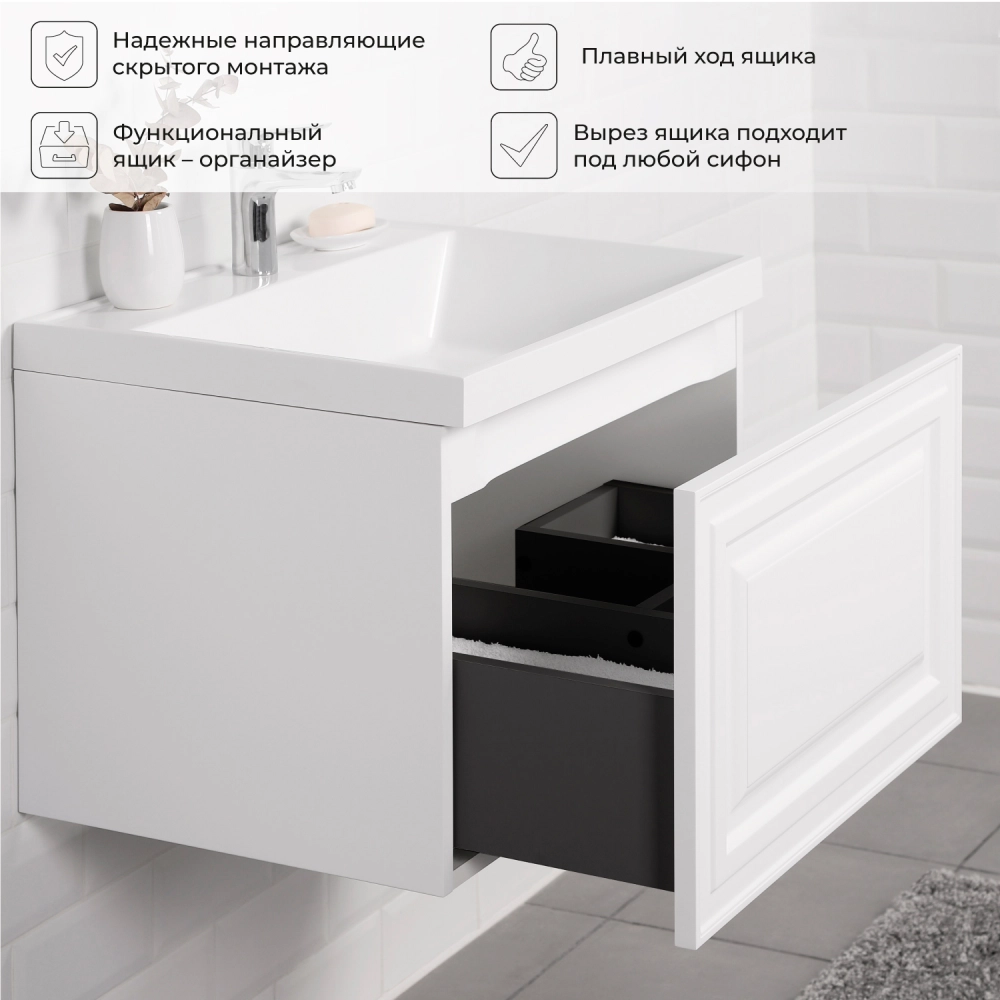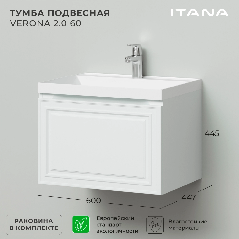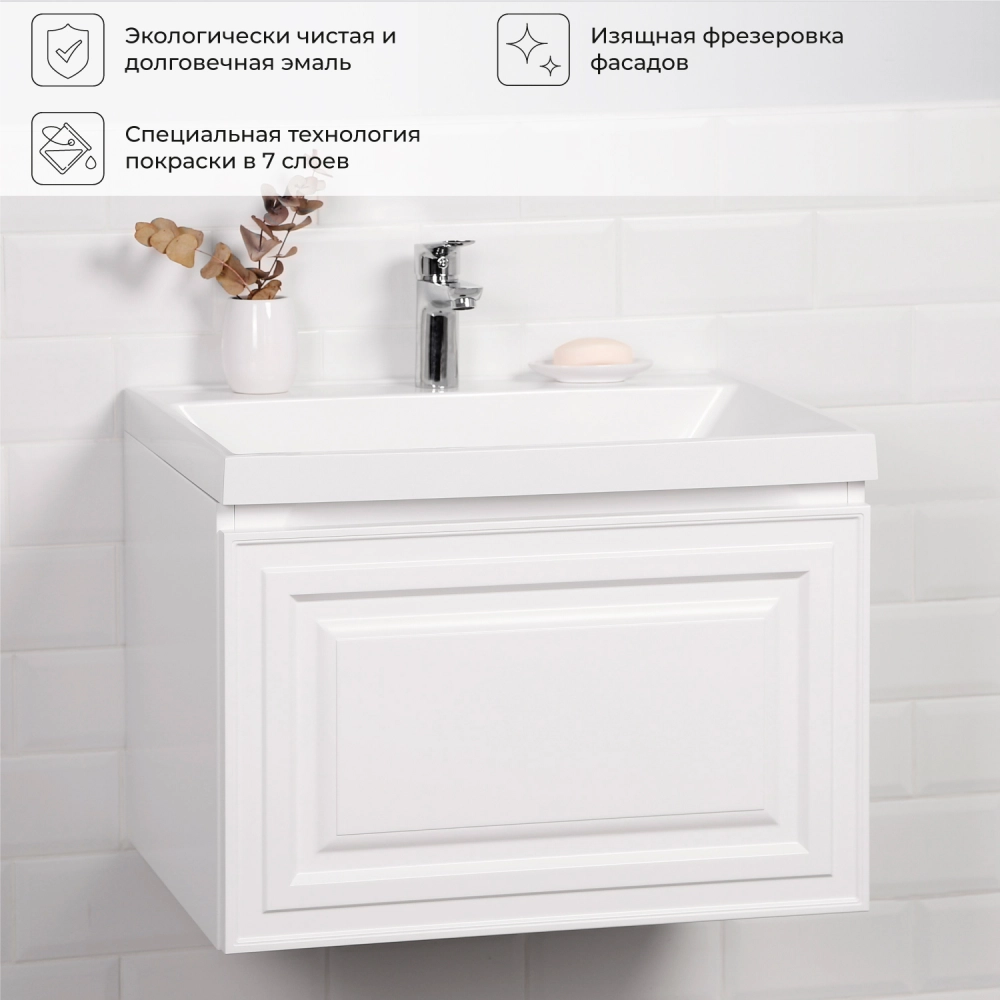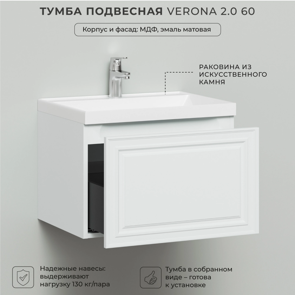 Тумба c раковиной подвесная Итана Verona 2.0 60 с выдвижным ящиком Эмаль Белый матовый
