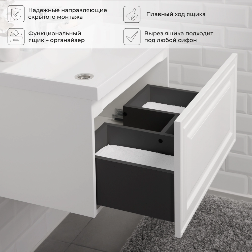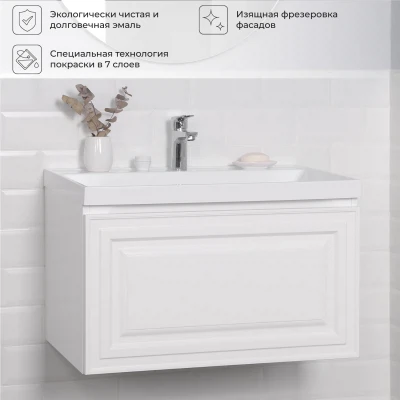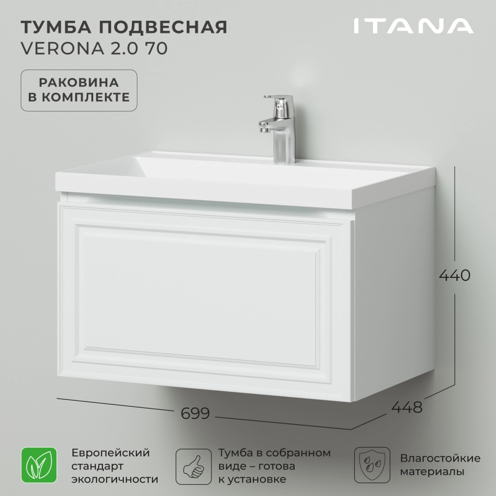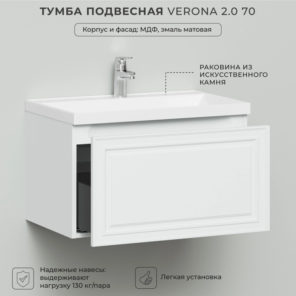 Тумба c раковиной подвесная Итана Verona 2.0 70 с выдвижным ящиком Эмаль Белый матовый