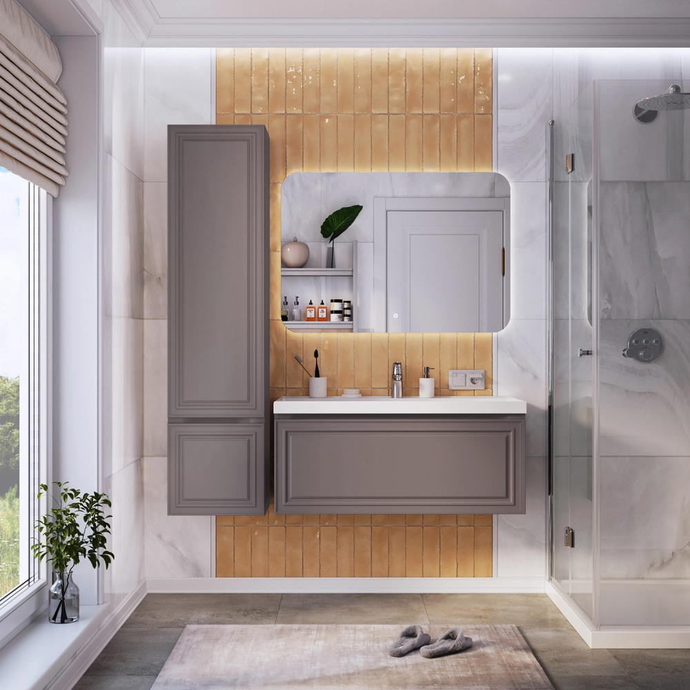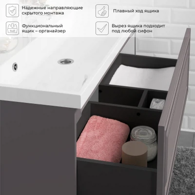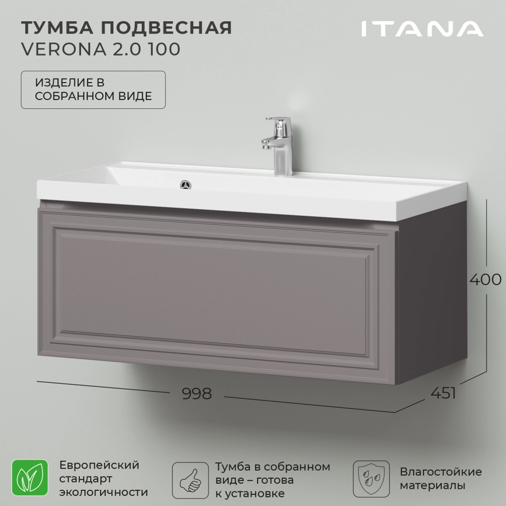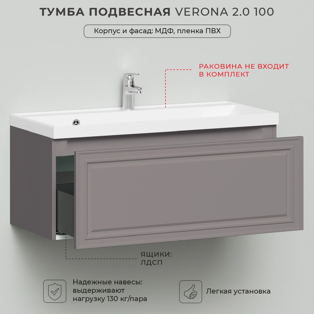 Подвесная тумба под раковину из коллекции Verona станет настоящим украшением ванной комнаты в современном скандинавском стиле. Навесной способ установки тумбы в ванную дает возможность не только визуально увеличить пространство, но и обеспечивает быстрый и удобный доступ для уборки. Размеры подвесной тумбы под раковину 998х451х400 - идеальный выбор для ванной комнаты или туалета. Тумба для ванны изготовлена из прочного МДФ, поэтому выдерживает высокие эксплуатационные нагрузки. Качественная фурнитура с доводчиками обеспечивает легкое открывание и плавное закрывание ящика. Вырез под сифон универсальный, для любого типа. Благодаря своей конструкции тумба в ванную обеспечивает удобный доступ к раковине и позволяет скрыть коммуникации. Тумба по раковину в ванную оснащена удобным ящиком для хранения, что позволяет разместить всё необходимое под рукой. Ручки интегрированы в фасад дверки шкафчика, что исключает возможность случайного удара о фурнитуру. Для точного выбора подвесной тумбы под раковину в ванную комнату рекомендуем обратиться к схеме замеров, которая находится на фото в карточке товара, размеры изделия могут отличаться +/-1 см в связи со спецификой производства. Тумба для ванной доставляется в предварительно собранном виде, надежно упакована.