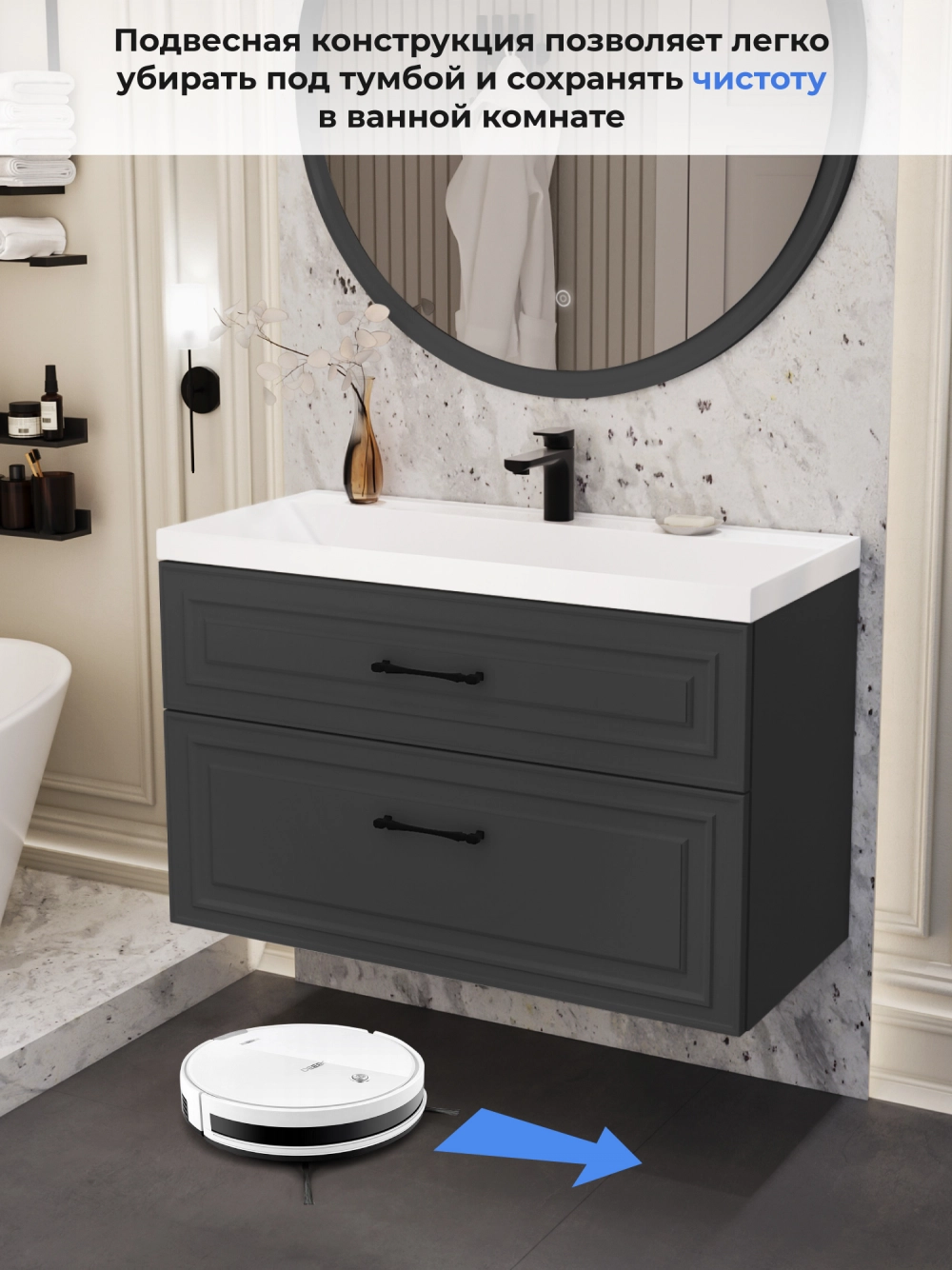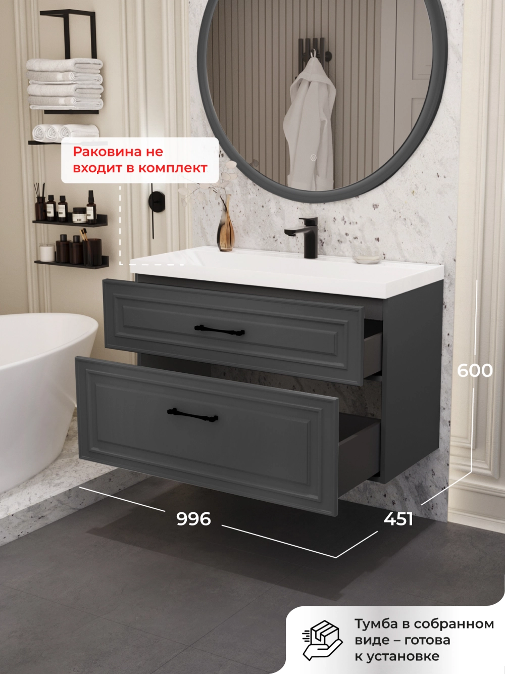 Тумба под раковину Итана Verona 2.0 100 с выдвижными ящиками Графит