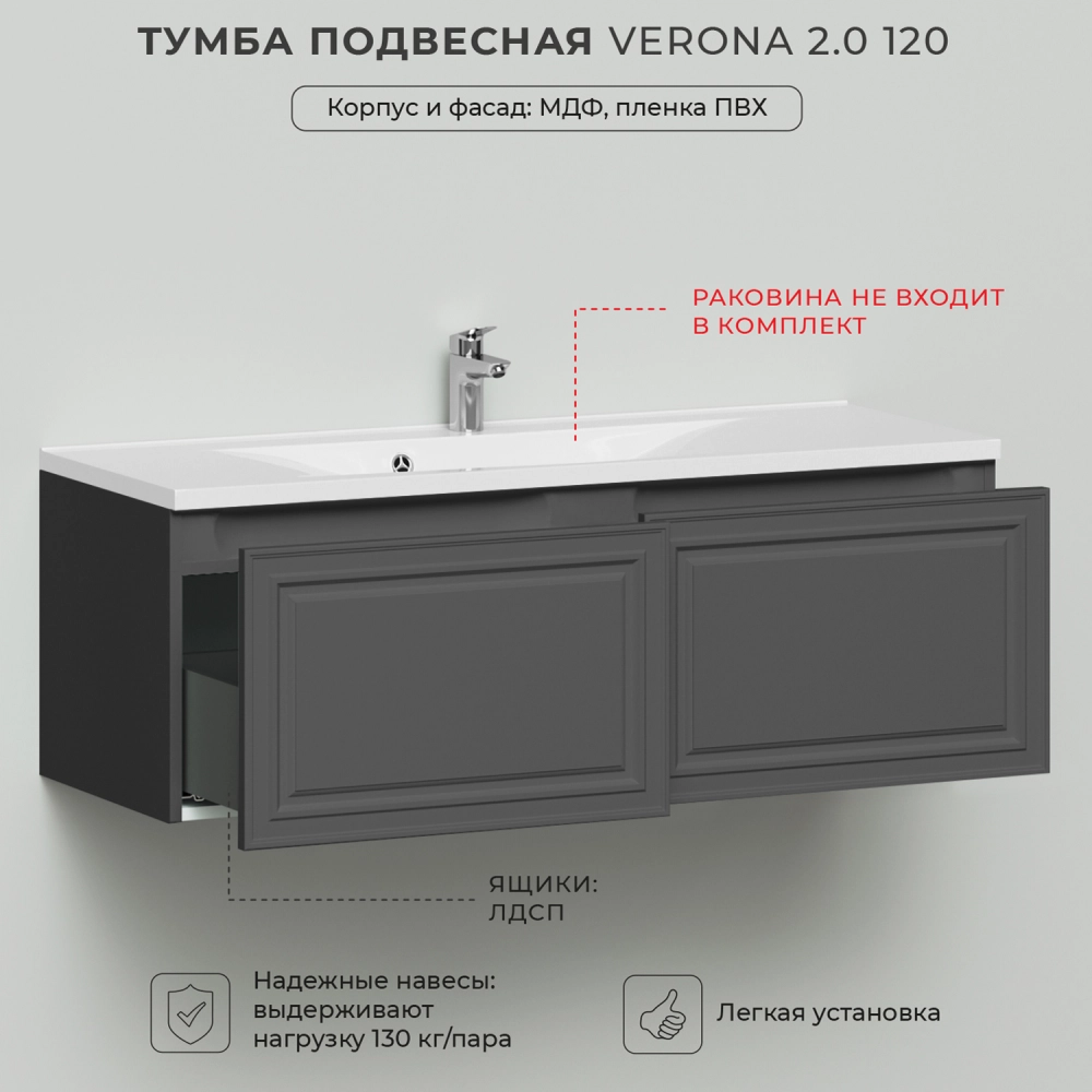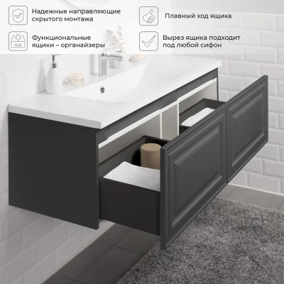 Тумба под раковину Итана Verona 2.0 120 с выдвижными ящиками Графит