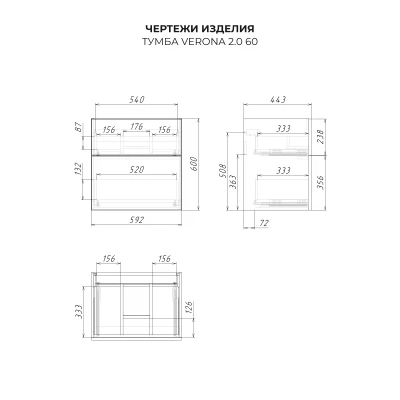 Тумба под раковину Итана Verona 2.0 60 с выдвижными ящиками Керамик