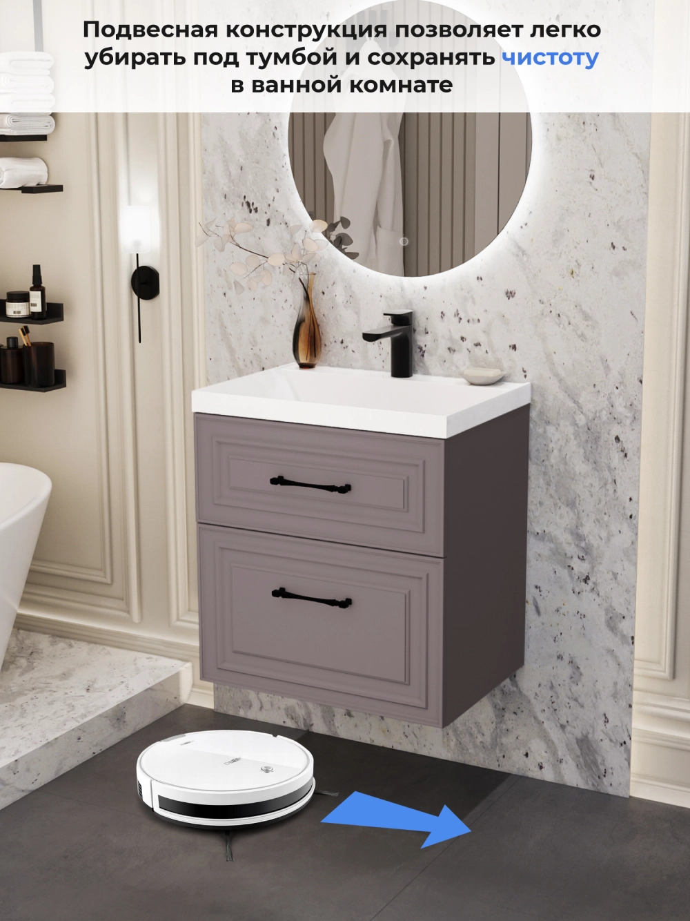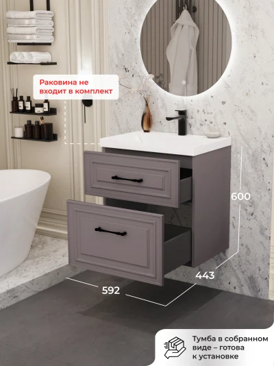 Подвесная тумба под раковину из коллекции Verona станет настоящим украшением ванной комнаты в современном скандинавском стиле. Навесной способ установки тумбы в ванную дает возможность не только визуально увеличить пространство, но и обеспечивает быстрый и удобный доступ для уборки. Размеры подвесной тумбы под раковину 592х443х600 - идеальный выбор для ванной комнаты или туалета. Тумба для ванны изготовлена из прочного МДФ, поэтому выдерживает высокие эксплуатационные нагрузки и обеспечивает дополнительную защиту тумбы под раковину от влаги и перепадов температуры. Качественная фурнитура с доводчиками обеспечивает легкое открывание и плавное закрывание ящика. Вырез под сифон универсальный, для любого типа. Благодаря своей конструкции тумба в ванную обеспечивает удобный доступ к раковине и позволяет скрыть коммуникации. Тумба под раковину в ванную оснащена удобным ящиком для хранения, что позволяет разместить всё необходимое под рукой. Ручки интегрированы в фасад дверки шкафчика, что исключает возможность случайного удара о фурнитуру. Для точного выбора подвесной тумбы под раковину в ванную комнату рекомендуем обратиться к схеме замеров, которая находится на фото в карточке товара, размеры изделия могут отличаться +/-1 см в связи со спецификой производства. Тумба для ванной доставляется в предварительно собранном виде, надежно упакована.
