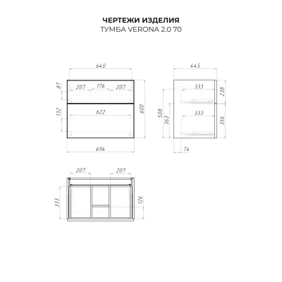 Тумба под раковину Итана Verona 2.0 70 с выдвижными ящиками Керамик