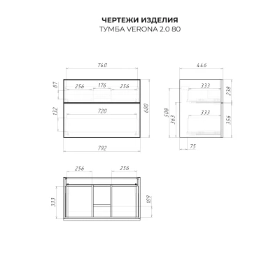 Тумба под раковину Итана Verona 2.0 80 с выдвижными ящиками Керамик