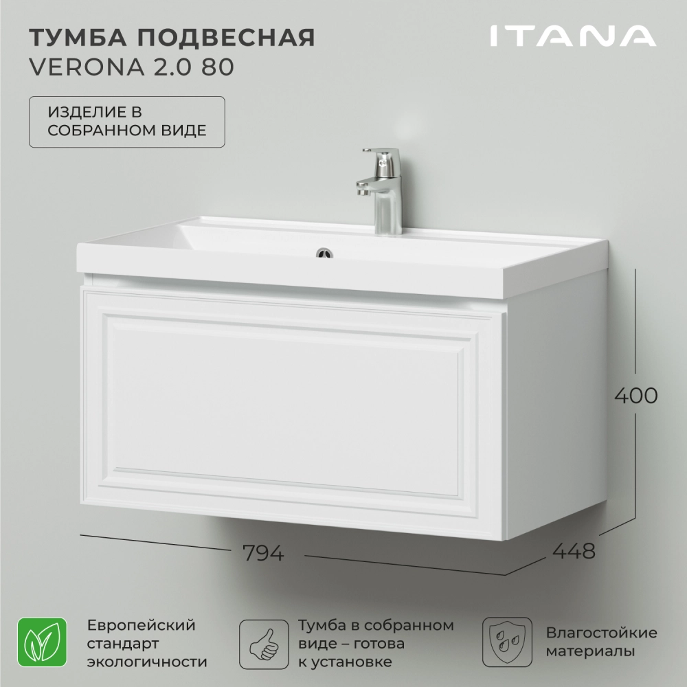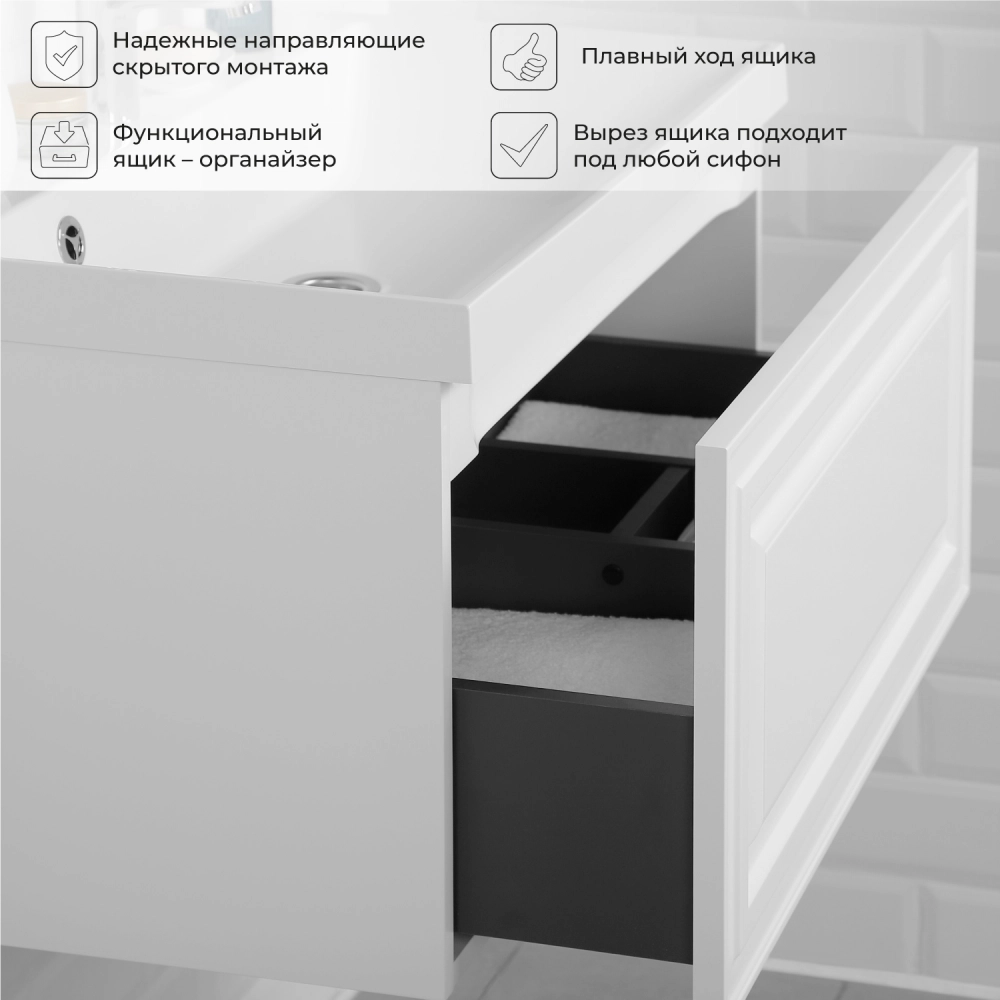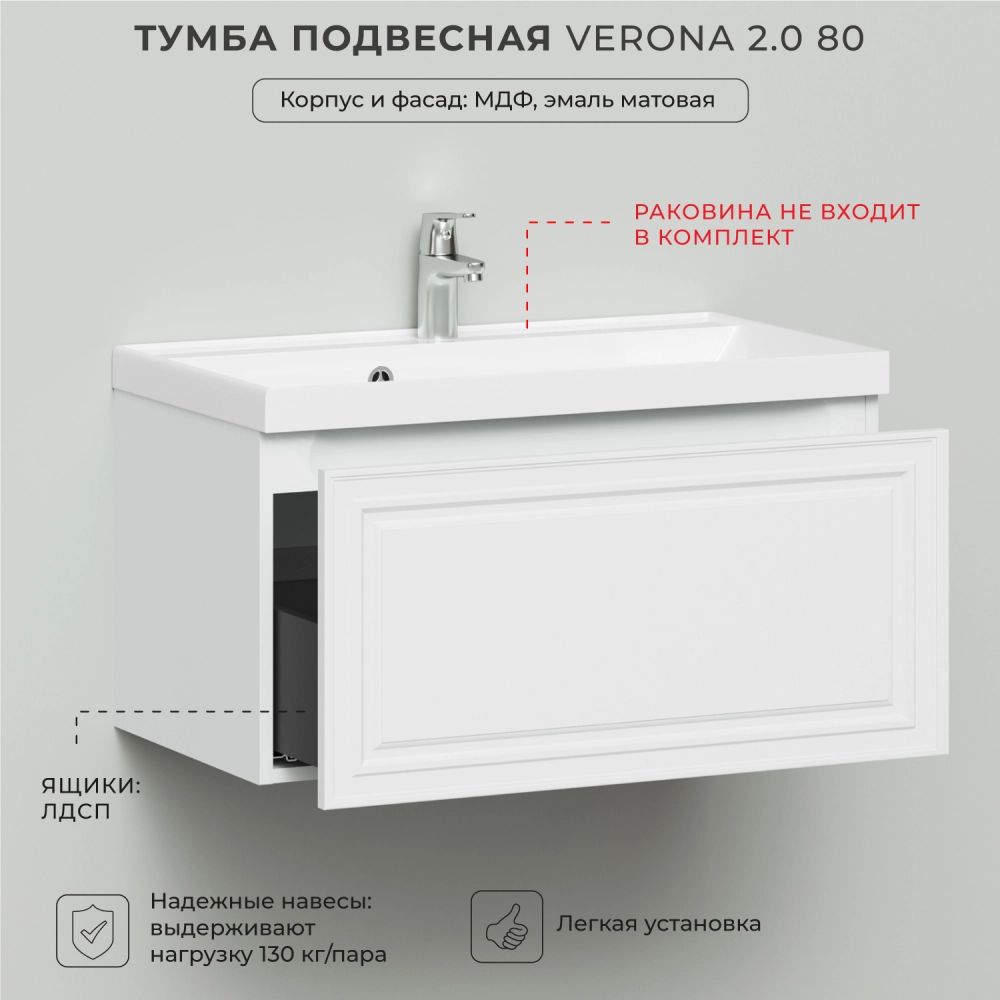 Тумба под раковину Итана Verona 2.0 80 с выдвижным ящиком Эмаль Белый матовый
